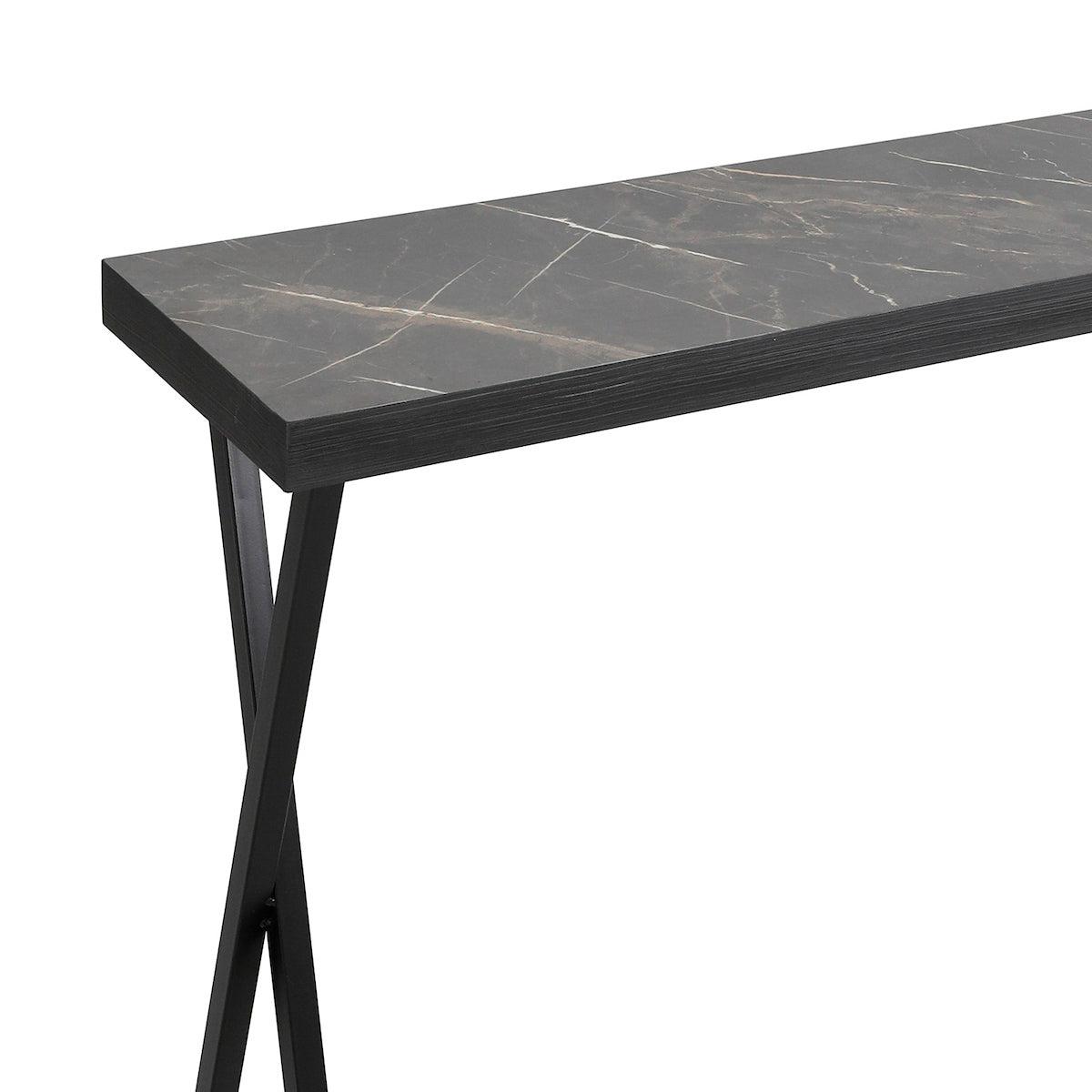 The versatile Brito console table is ideal for small rooms and hallways thanks to its narrow depth. Featuring a dark marble effect finish with black metal legs. Please note that some light assembly is required. The versatile Brito console table is ideal for small rooms and hallways thanks to its narrow depth. Featuring a dark marble effect finish with black metal legs. Please note that some light assembly is required.