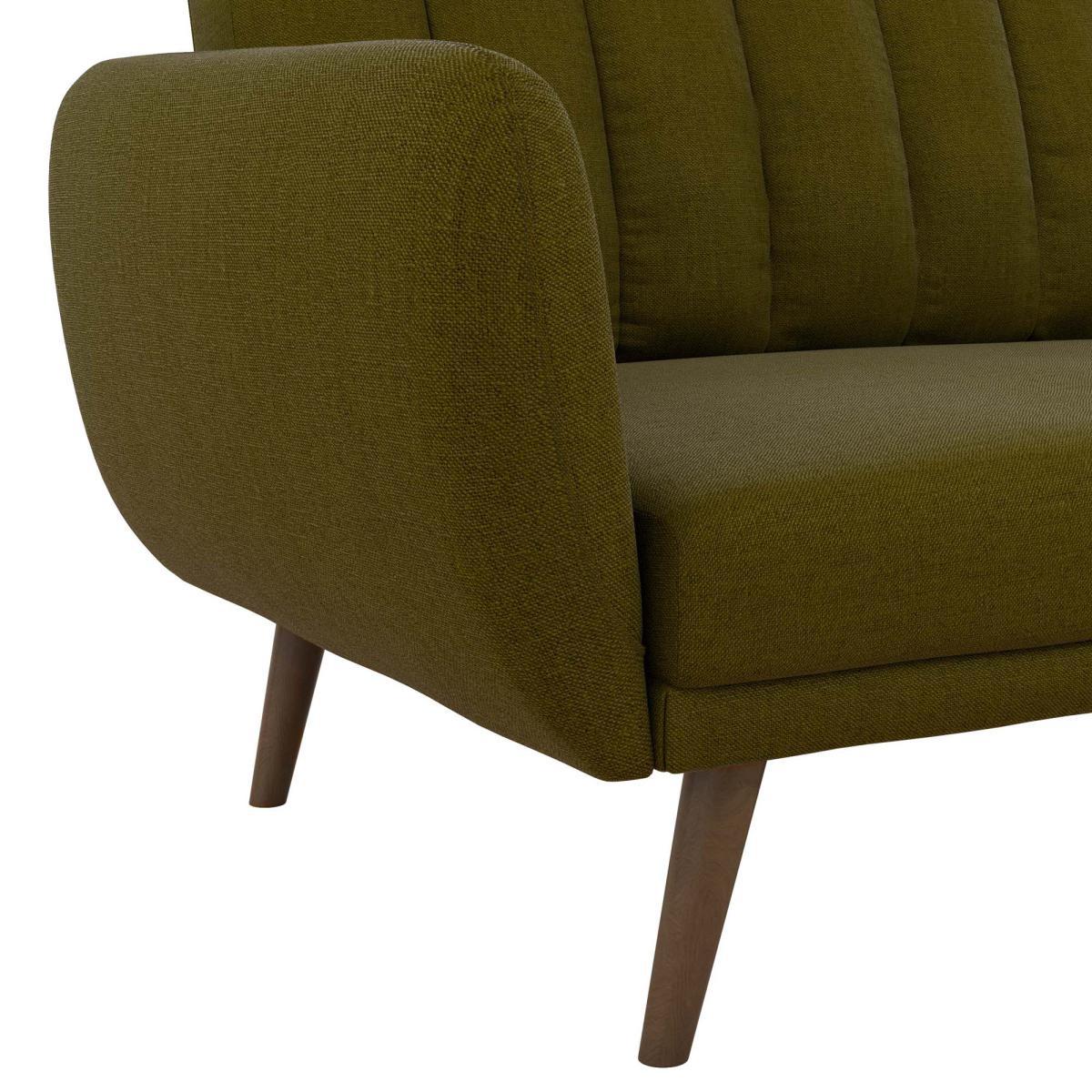 Featuring a versatile, multipurpose design, the Brittany sofa bed is upholstered in a soft tufted linen fabric with a ribbed backrest and comes in a choice of stunning colourways. Ideal for smaller living spaces seamlessly converts from a sofa to a bed, allowing you to make the most out of your space. Complete with a sturdy wooden frame, foam-filled seats and slanted oak coloured wooden legs, this stunning sofa bed would make a great addition to any modern living space.
