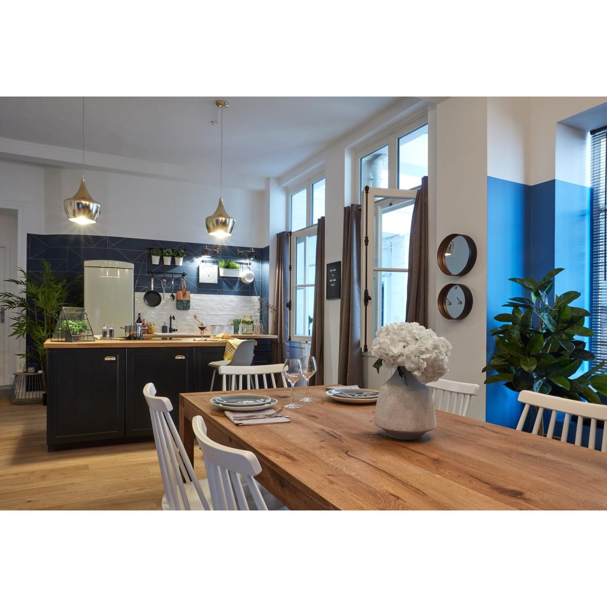 I’m a big fan of the Briva table because its clean lines and distressed oak veneer bring just the right amount of character without feeling fussy, and the simple extension mechanism means you can go from casual weekday dinners to weekend dinner parties in seconds. It suits everything from Scandi-inspired flats to modern farmhouse kitchens or even an industrial loft when paired with metal-frame chairs. For styling, keep it relaxed: a neutral runner or a single row of low ceramic vases looks great, and I’d mix in chairs of different textures - think leather plus woven or upholstered seats - to add depth. Underneath, a flat-weave jute or sisal rug grounds the table, and in winter you can swap in tapered candles and seasonal greenery without over-facing the wood’s natural warmth.