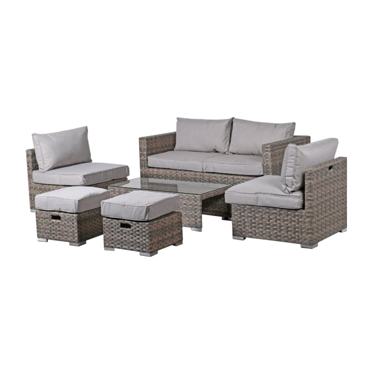 Brixham 6 Piece Garden Sofa Set in Grey Weave with Grey Fabric - Barker & Stonehouse