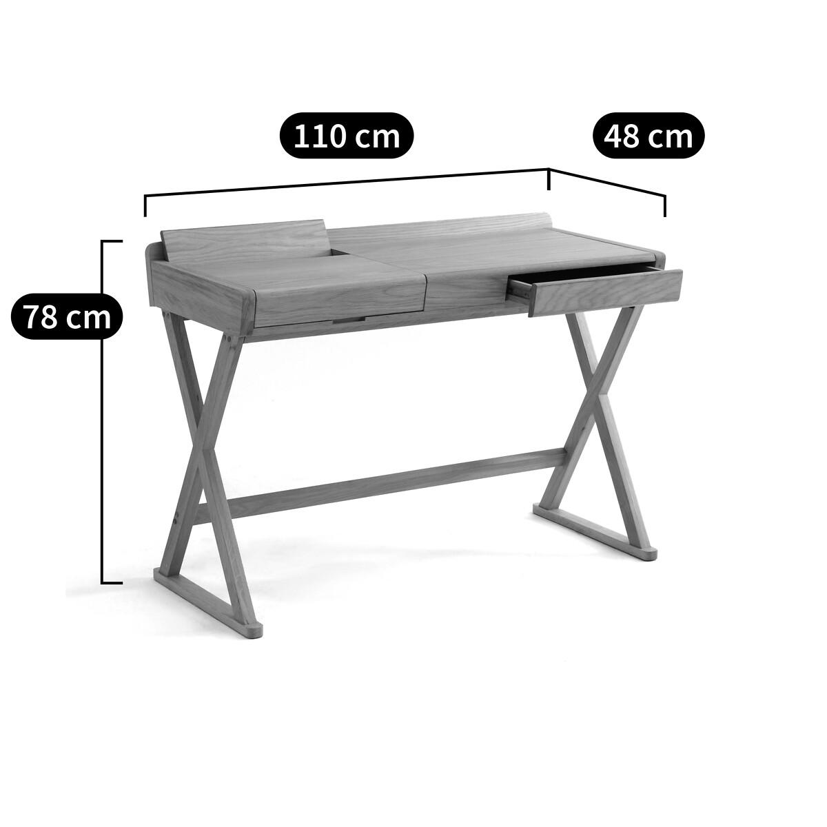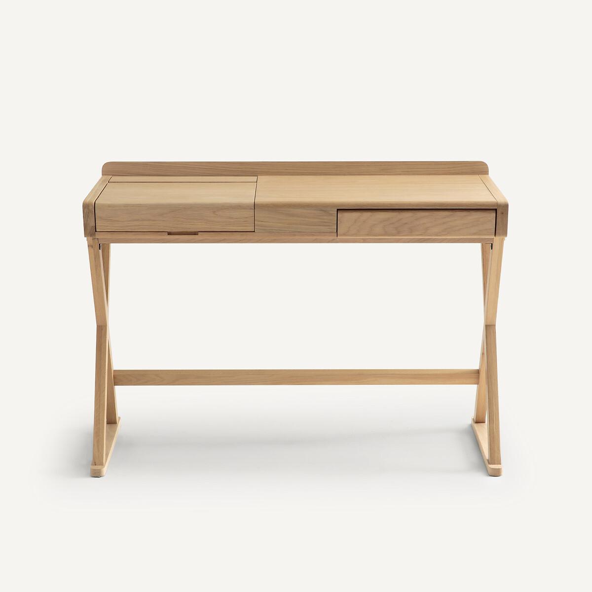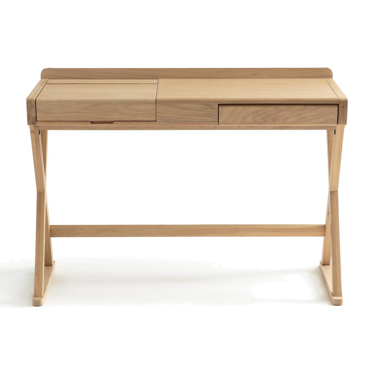 The Brixton desk. Designed by Emmanuel Gallina exclusively for AM.. Perfectly combining elegance and practicality, it's flip up top conceals storage space for a laptop computer and its drawer is perfect for storing office equipment. Product Details • MDF structure, oak veneer. FSC® Mixed certified wood • Solid oak legs. FSC® Mixed certified wood. Dimensions • Total: L110 x H78 x D48cm • Drawer:L36 x H4 x D29cm • Compartment under the flip up top: L41 x H5 x D42cmDelivery:. Available for home delivery. Note! Please check that all access points are large enough to accommodate your delivery (doors, stairs, lifts). • WOOD FROM MORE SUSTAINABLY MANAGED FORESTS AND CONTROLLED SOURCES. FSC® Mix wood contains at least 70% FSC® certified and/or recycled wood, the remainder being FSC® controlled wood. Parcel Dimensions • L121.5 x H29.5 x D58cm • 29.5kg