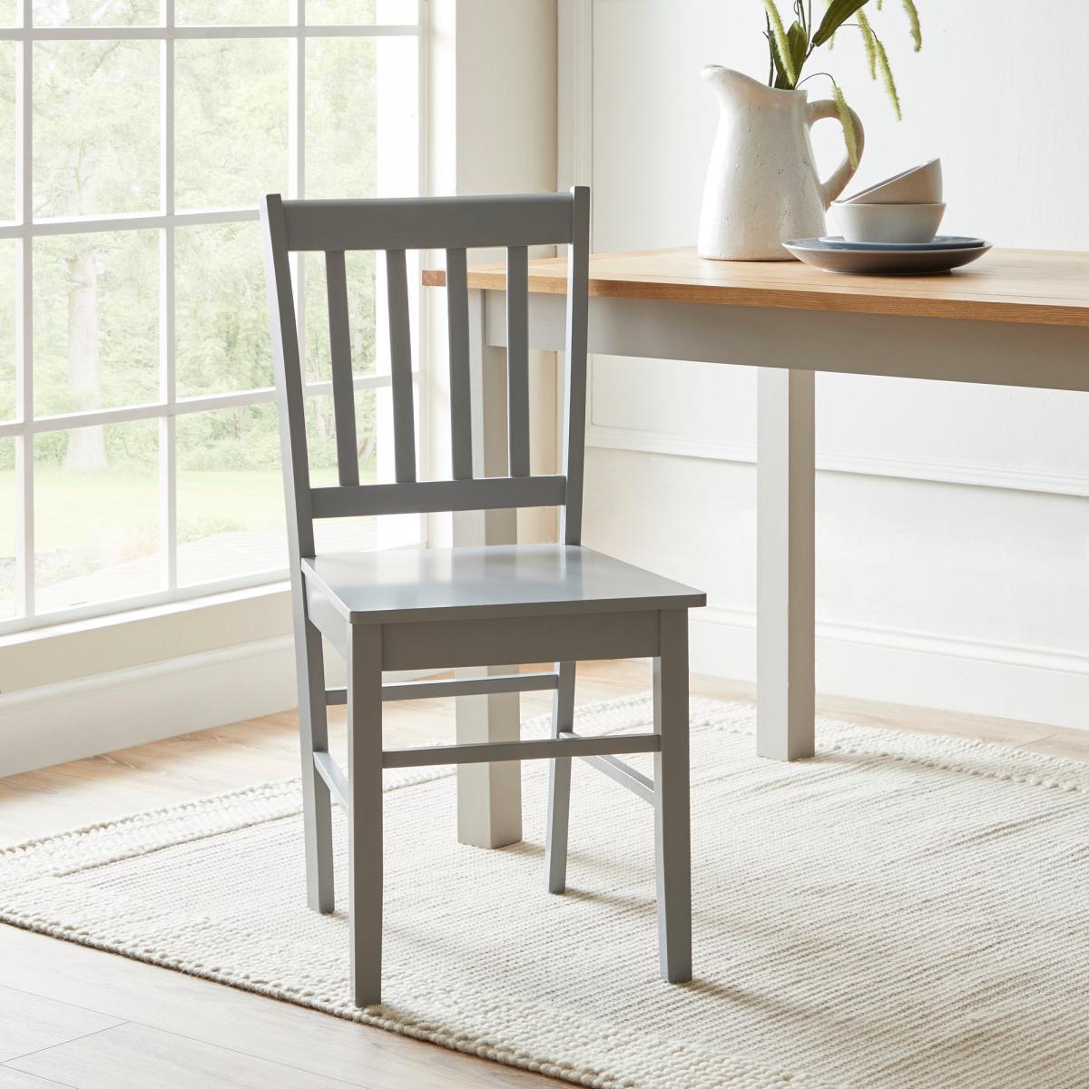 I really like these chairs for their versatile, understated style. The grey hue is neutral enough to complement a variety of colour palettes and works well in contemporary, Scandi, or even traditional interiors with the right accents. They’ve got a clean, classic silhouette that can easily be dressed up with colourful cushions or kept pared-back for a minimalist look. Practical styling tips include pairing them with a natural wood or painted table to create contrast, or adding a textured rug underneath to add warmth and visual interest. These chairs are great for both everyday family dinners and more casual entertaining setups.