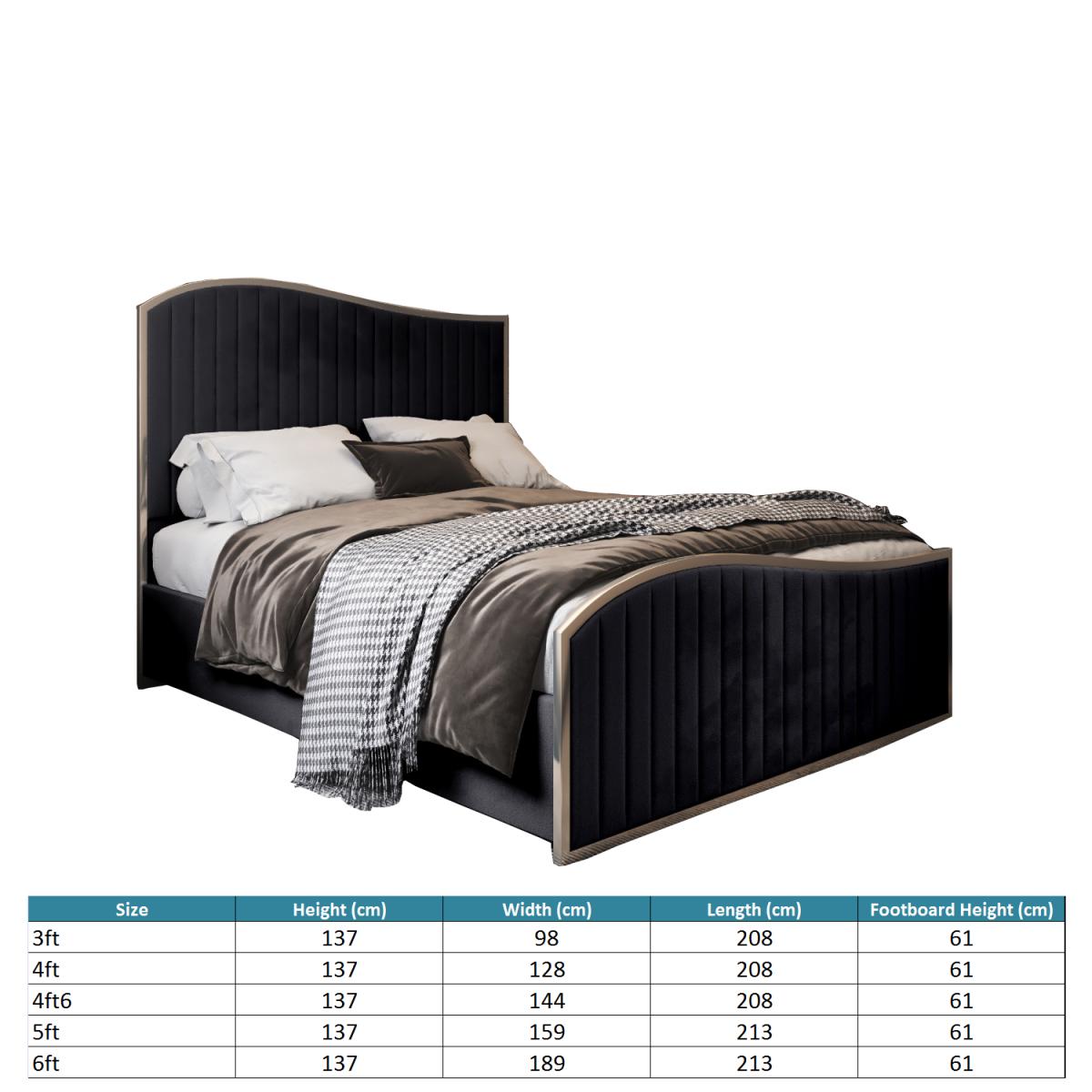 Featuring a strong and stunning metal frame that is available in a variey of colours. The luscious and generous padded upholstery fabric is completely customisable to suit and interior. We have five fabulous fabric options with an extensive colour pallet to make it truely bespoke. The minimalistic design with vertical line detailing exudes a timeless sophistication that's guaranteed to make an impact in your bedroom. This stunning bed not only commands your attention, it demands it. The metal wave design evokes a serene aura reminiscent of a boat rolling on the waves at sea, promising to lull you to sleep and reward you with a night of pleasant dreams. All beds come with quality solid platform boards for robust and durable mattress support. All fittings on the bed are pre-fitted, making the bed very easy to assemble. Ready to sleep in two simple steps.