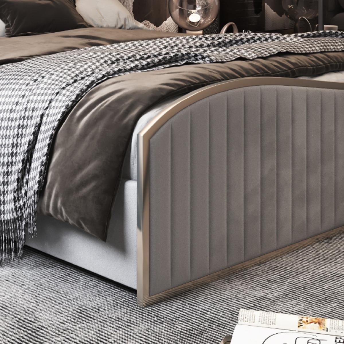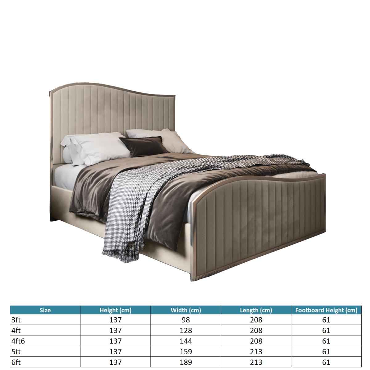 Featuring a strong and stunning metal frame that is available in a variey of colours. The luscious and generous padded upholstery fabric is completely customisable to suit and interior. We have five fabulous fabric options with an extensive colour pallet to make it truely bespoke. The minimalistic design with vertical line detailing exudes a timeless sophistication that's guaranteed to make an impact in your bedroom. This stunning bed not only commands your attention, it demands it. The metal wave design evokes a serene aura reminiscent of a boat rolling on the waves at sea, promising to lull you to sleep and reward you with a night of pleasant dreams. All beds come with quality solid platform boards for robust and durable mattress support. All fittings on the bed are pre-fitted, making the bed very easy to assemble. Ready to sleep in two simple steps.