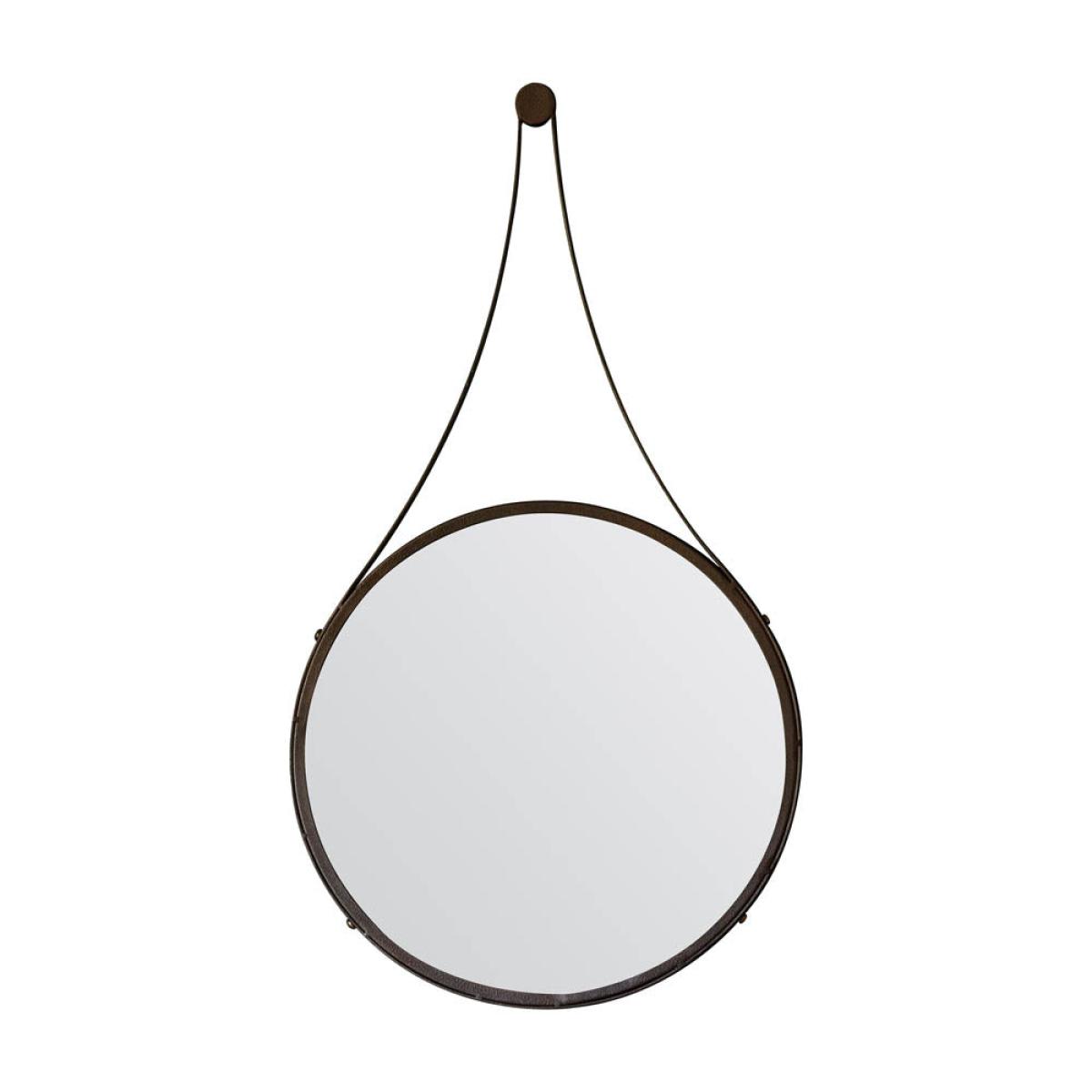 Add a slightly industrial feel to a wall with this unusual mirror which features a metal surround and 'hanging strap'. Smaller size also available.