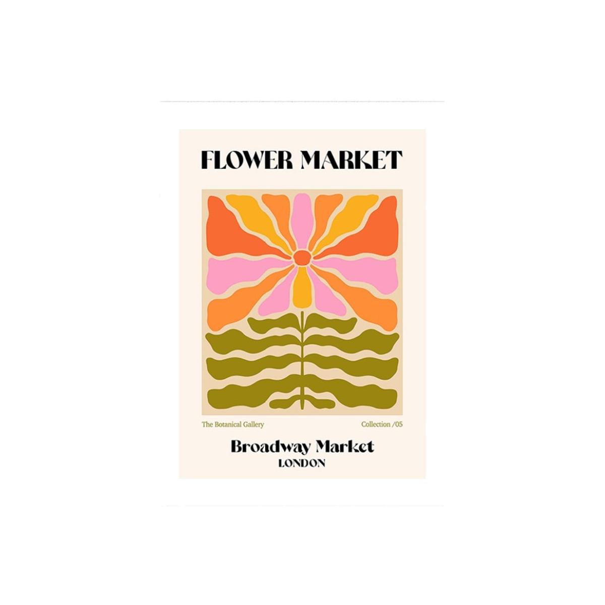This flower market art print offers a vibrant, retro-inspired style that works well in contemporary or eclectic interiors. I love its bold colour palette and graphic design, making it a great statement piece for living rooms, bedrooms, or even entryways. The A1 size allows it to hold its own on a larger wall, especially if paired with minimalist furniture and simple frames-that way, the artwork remains the focus. Practical styling tips include layering it with other prints in similar tones for a gallery wall, or displaying it solo in a space with neutral or muted decor to really let it pop. Using a clip frame or a sleek mount can give it a modern edge while preserving its colourful integrity.