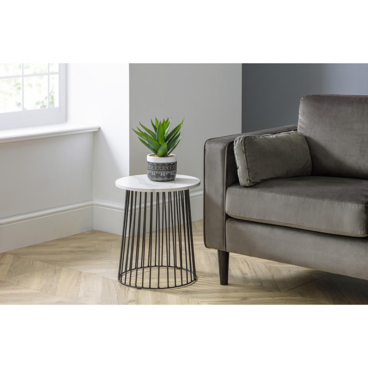The Broadway Lamp Table is a style centrepiece for any modern living room. Crafted from a black powder coated steel base with a round white marble finished top, this lamp table is on-trend with a contemporary industrial feel.