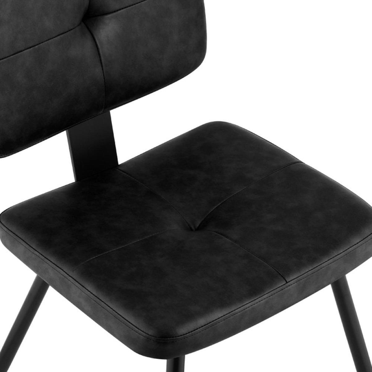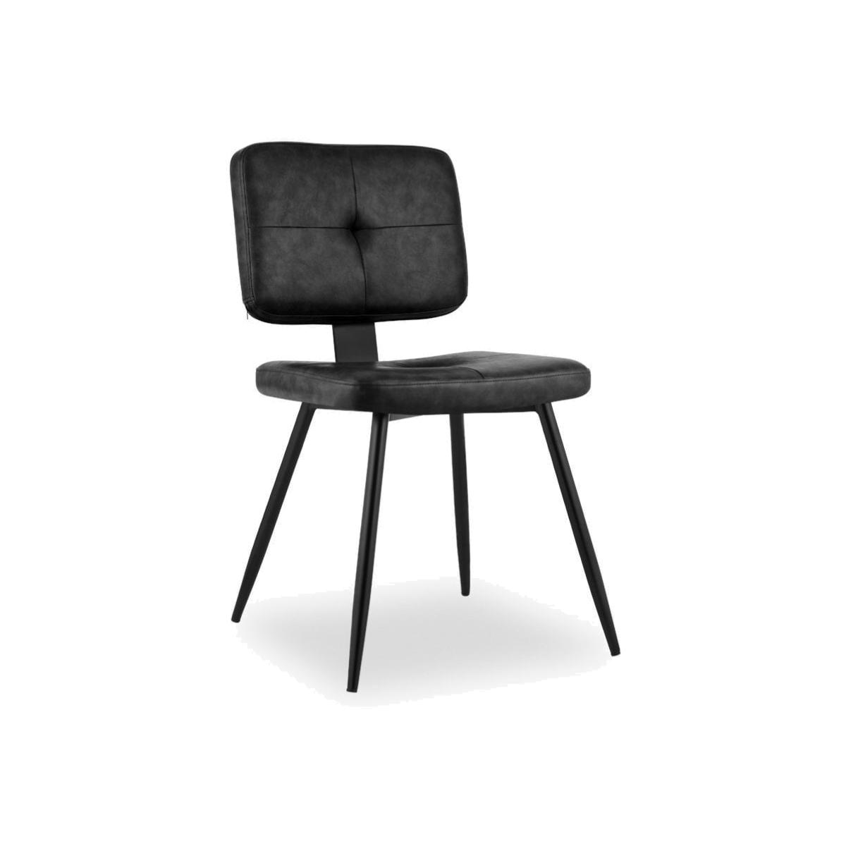Top to bottom metal can only mean one thing, and that is classic industrial design. The Brockwell dining chair is as practical as it is stylish with vintage black faux leather upholstering a soft padded backrest and seat with button and stitched detailing. With robust metal legs, the Brockwell offers a raw modern touch to any dining space.