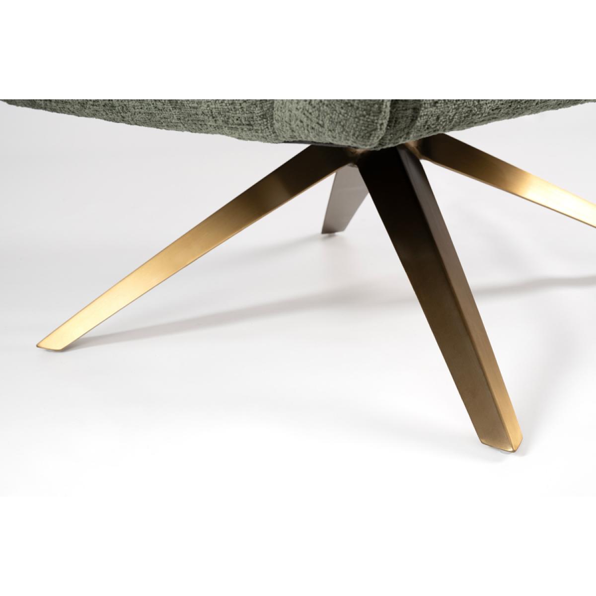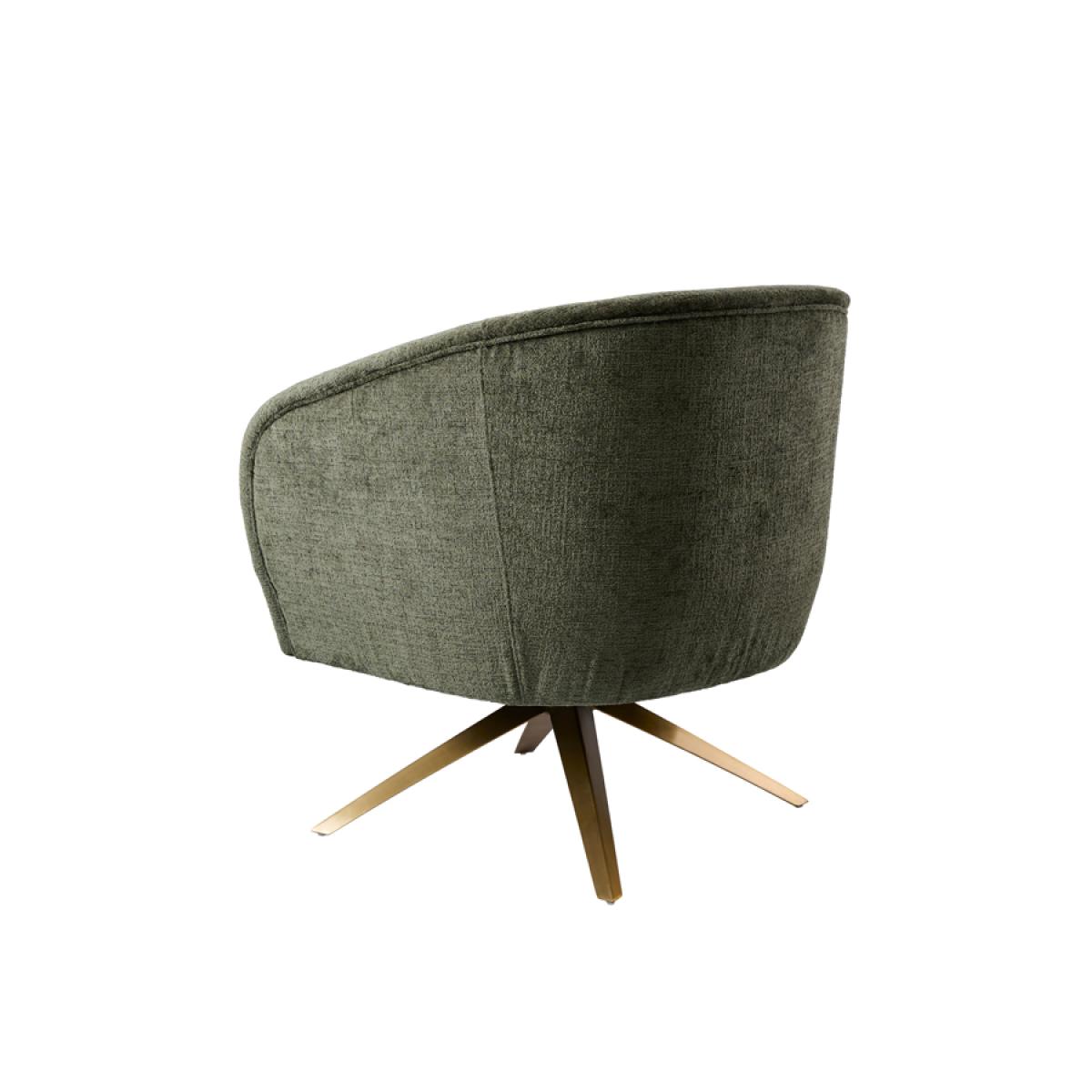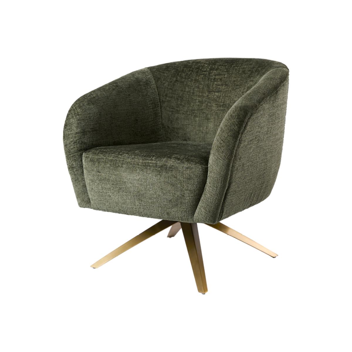 A striking lounge chair inspired by highly collectable Mid-Century American furniture. Sculptural swivel base with brushed brass finish. Comfortable sprung seat. Upholstered in a soft, tactile, chenille fabric.