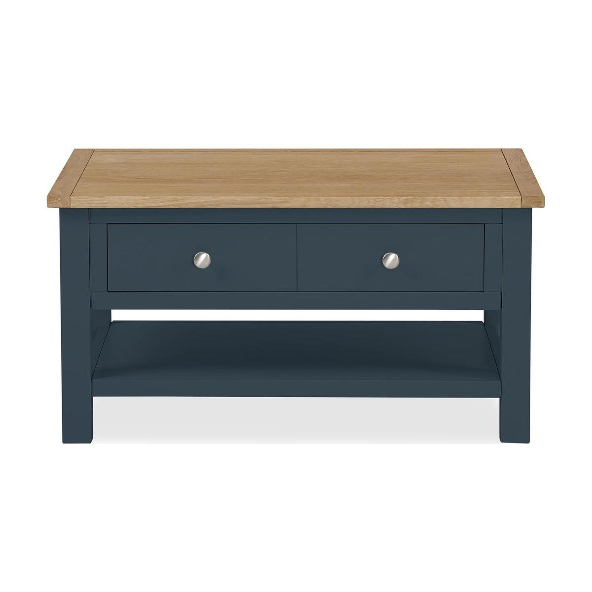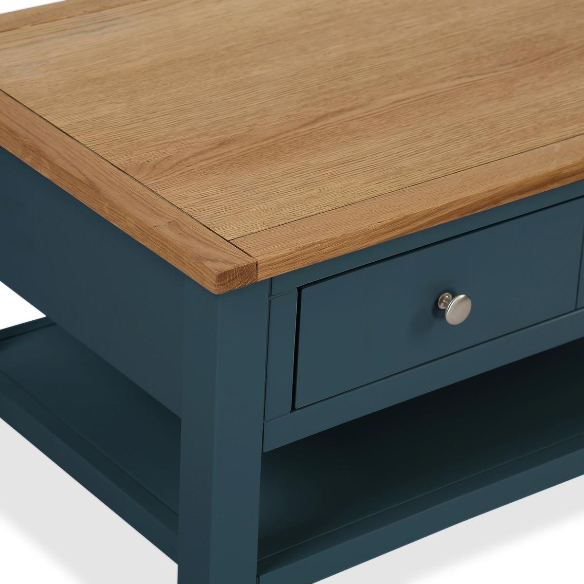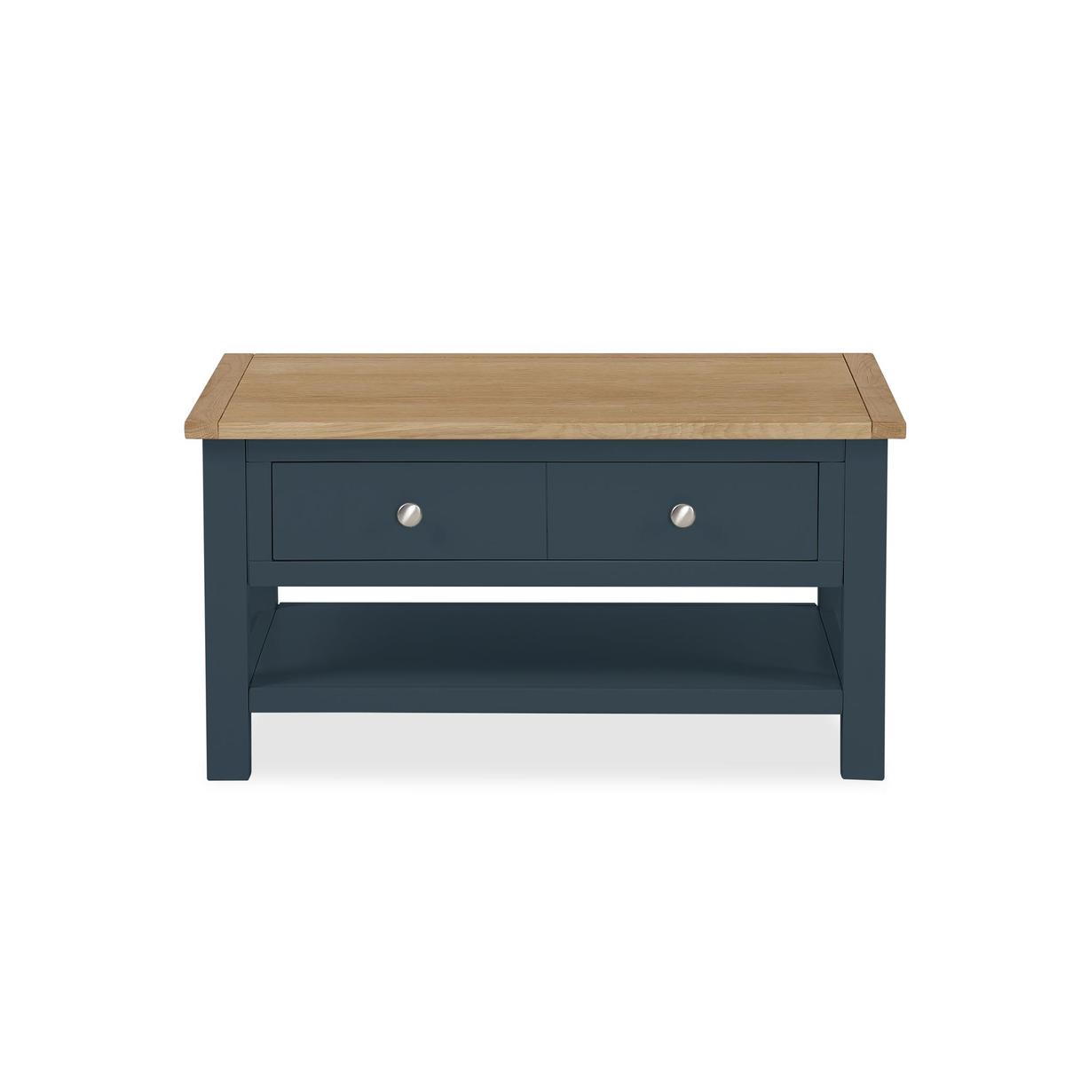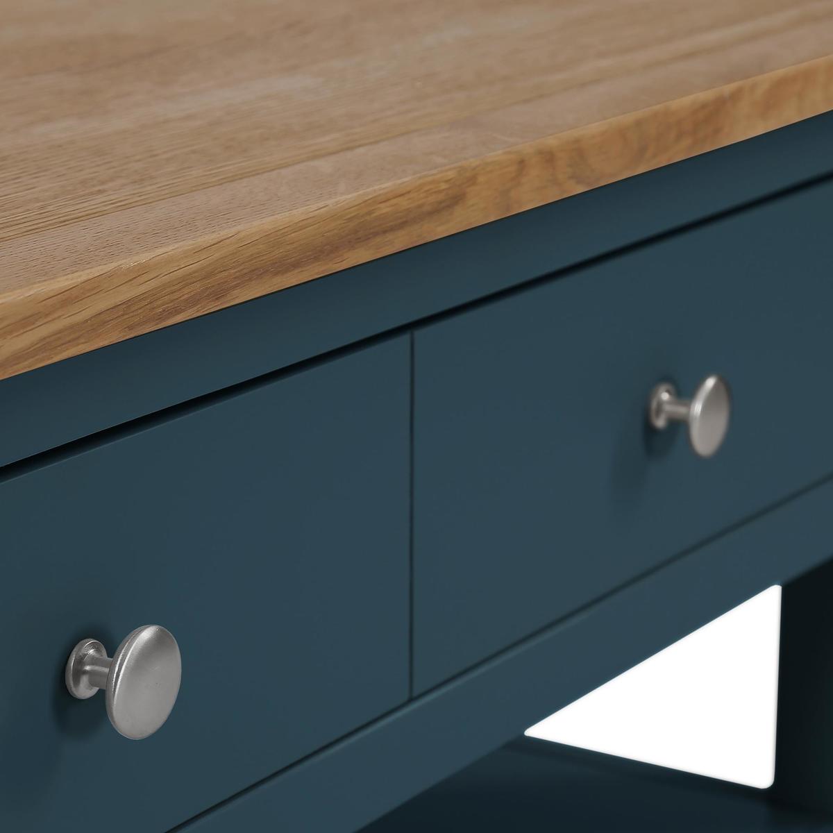 Dunelm Exclusive – Designed and Developed by Dunelm. The Bromley range is ideal for adding a country classic touch to your home, whilst having the advantage and flexibility of furnishing the most compact of living spaces. Constructed from a solid wood and oak veneer, each piece features blue paint with a contrasting wax finish. Supplied with smooth sliding drawers, this range comes complete with beautiful silver finished metal handles, perfect for a range of rooms in the home. This classic and stylish Bromley coffee table features a fixed shelf and a spacious drawer complete with smooth wooden runners, perfect for maximising storage space.