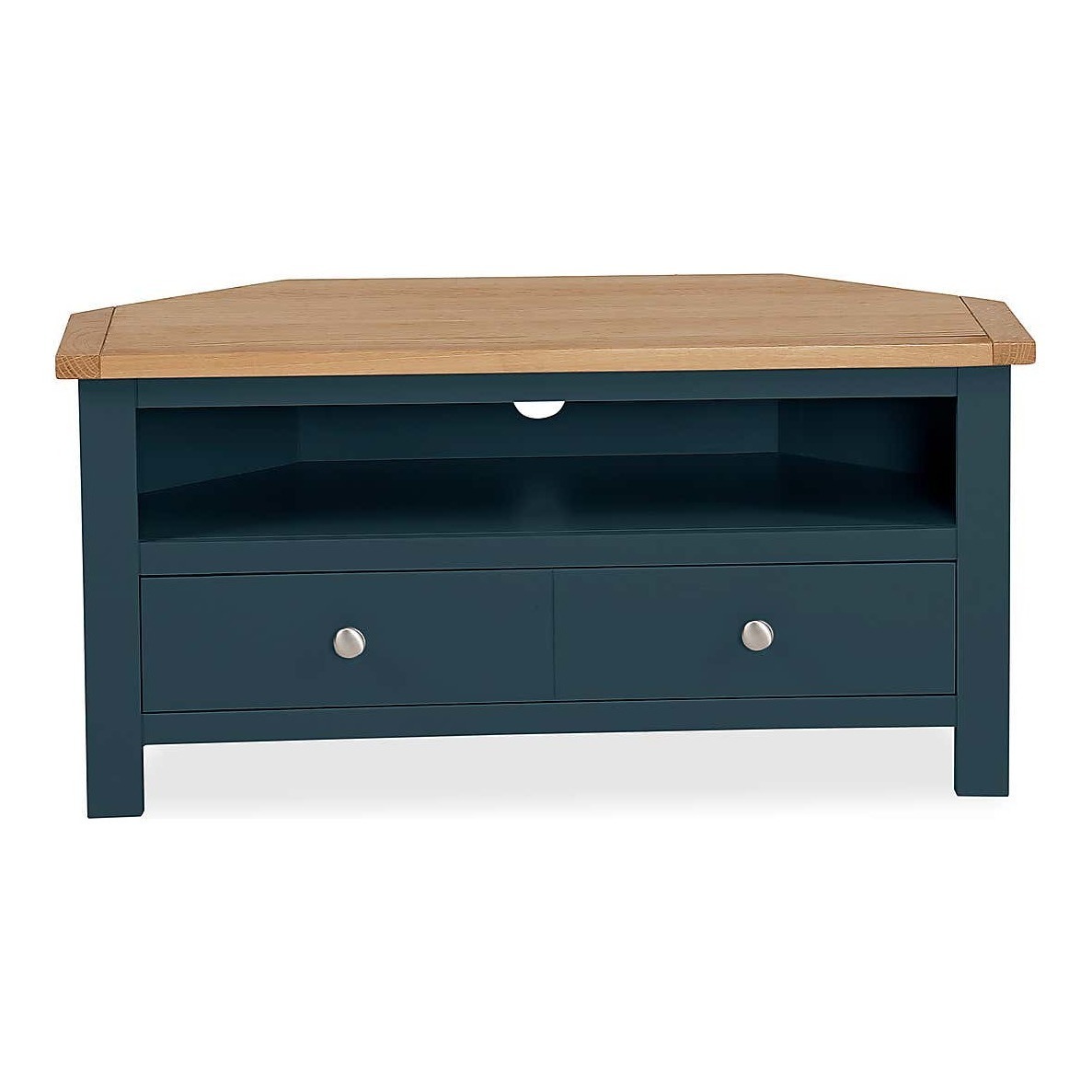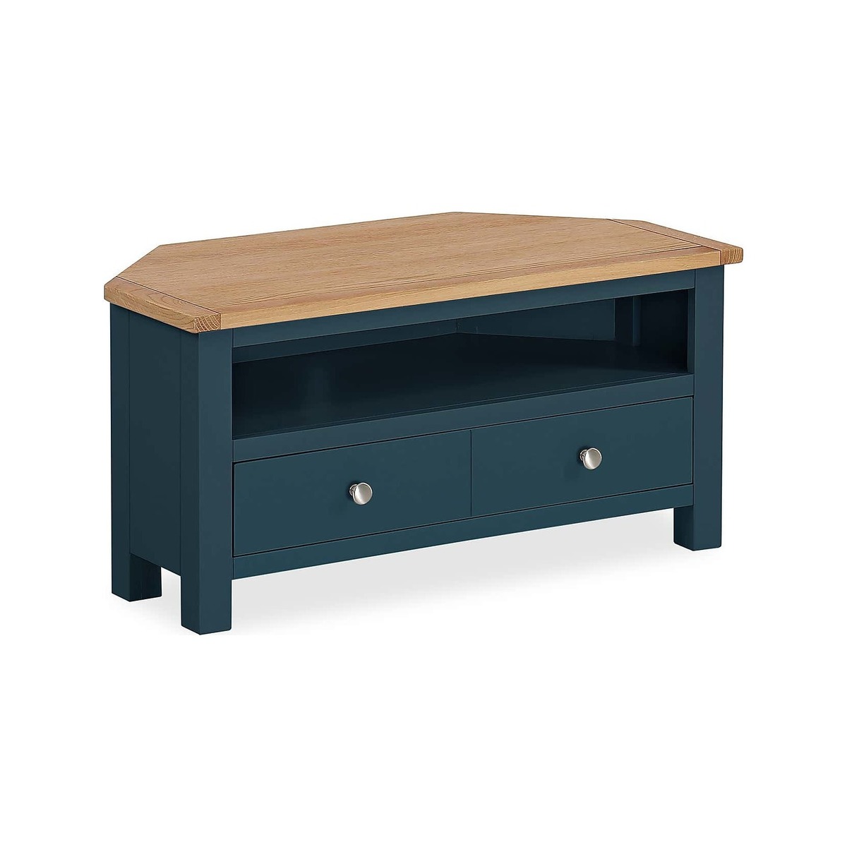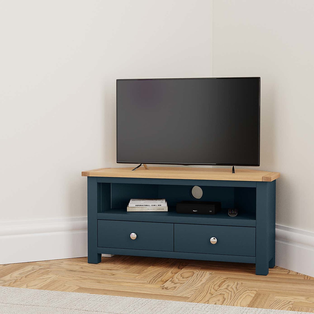 I love the Bromley Blue Corner TV Stand for its practical design and subtle colour palette that can complement a range of interiors. Its blue hue adds a touch of personality without overwhelming a space, making it especially versatile for both contemporary and coastal-inspired rooms. I’d style it with minimal accessories to keep the clean lines prominent, perhaps adding a sleek lamp or decorative books on top. It's perfect for corner placement, helping utilise space efficiently in smaller living rooms or open plan areas, while the drawers and shelf provide handy storage for media accessories. To keep it looking fresh, pair with neutral or light-coloured walls to let the blue stand out and create a welcoming yet organised focal point in your lounge.