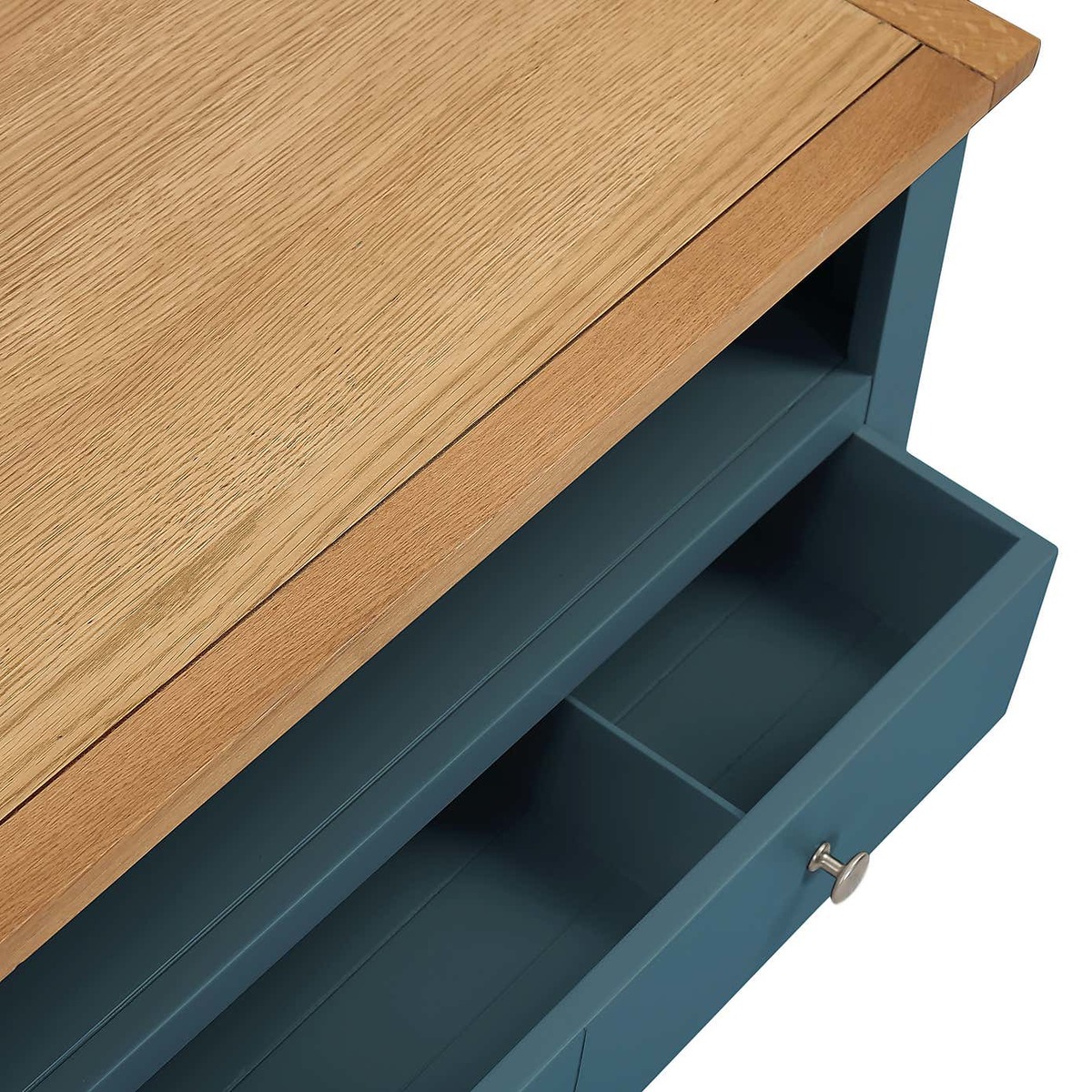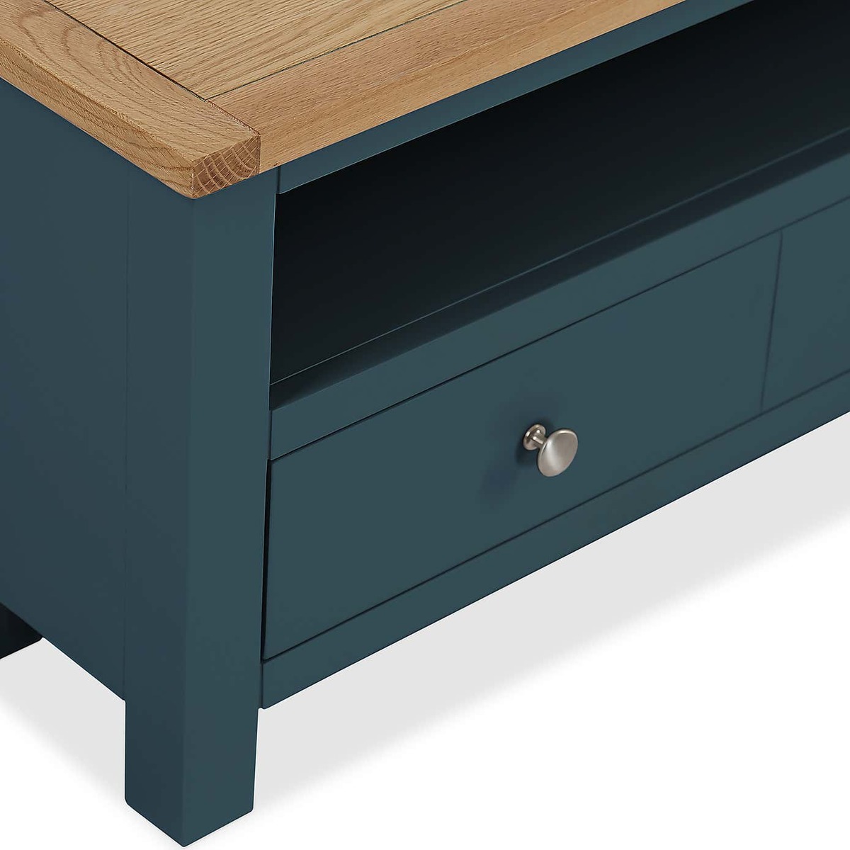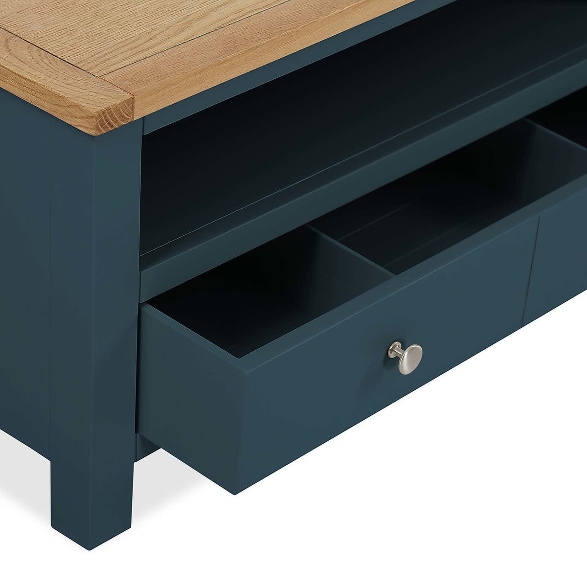 I love the Bromley Blue Corner TV Stand for its practical design and subtle colour palette that can complement a range of interiors. Its blue hue adds a touch of personality without overwhelming a space, making it especially versatile for both contemporary and coastal-inspired rooms. I’d style it with minimal accessories to keep the clean lines prominent, perhaps adding a sleek lamp or decorative books on top. It's perfect for corner placement, helping utilise space efficiently in smaller living rooms or open plan areas, while the drawers and shelf provide handy storage for media accessories. To keep it looking fresh, pair with neutral or light-coloured walls to let the blue stand out and create a welcoming yet organised focal point in your lounge.