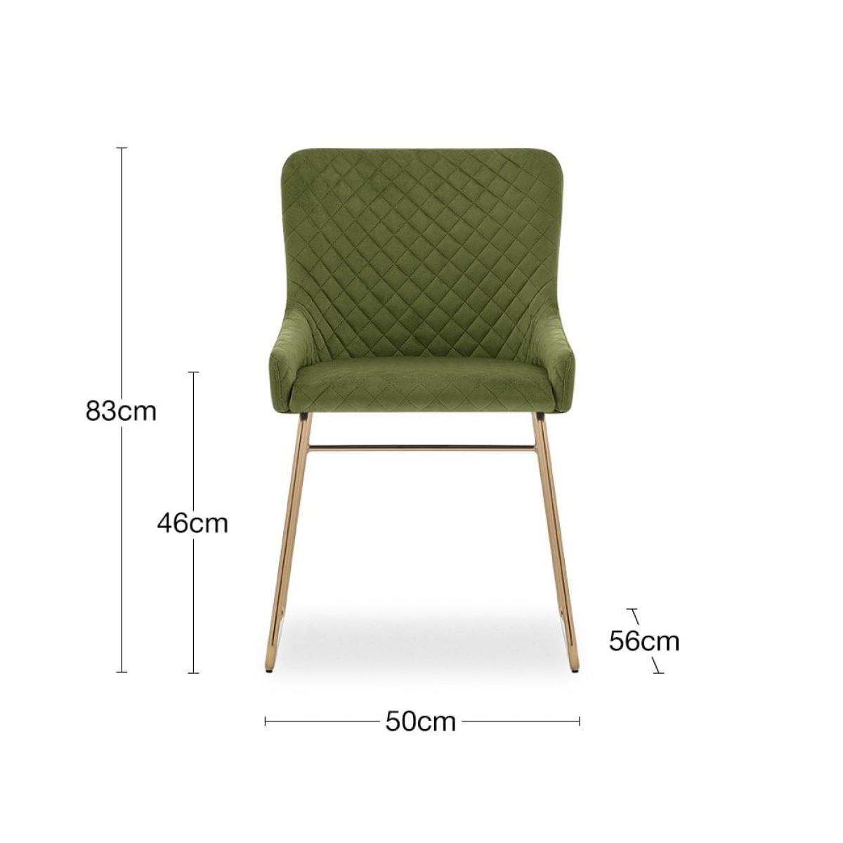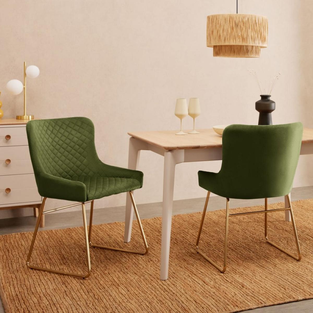 Take a seat with the Bromley dining chair in moss green velvet with diamond-stitched design and curved back for maximum comfort. With padded seat and backrest in luxurious velvet, the Bromley offers Art Deco style to your kitchen or dining room. The angled metal legs give further stability in this classic design. View The Bromley Range