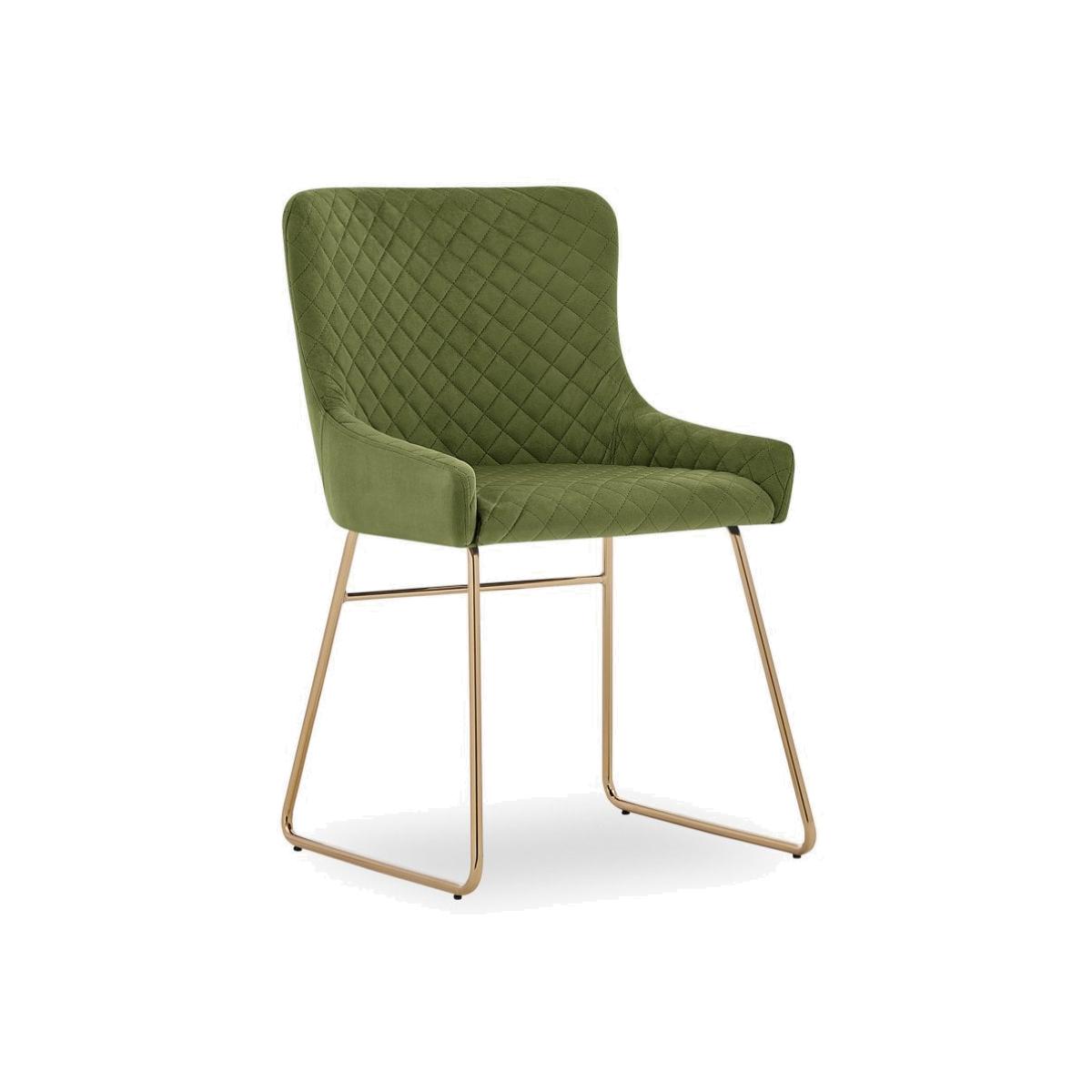 Bromley Dining Chair, Moss Green Velvet Leg Colour: Brass