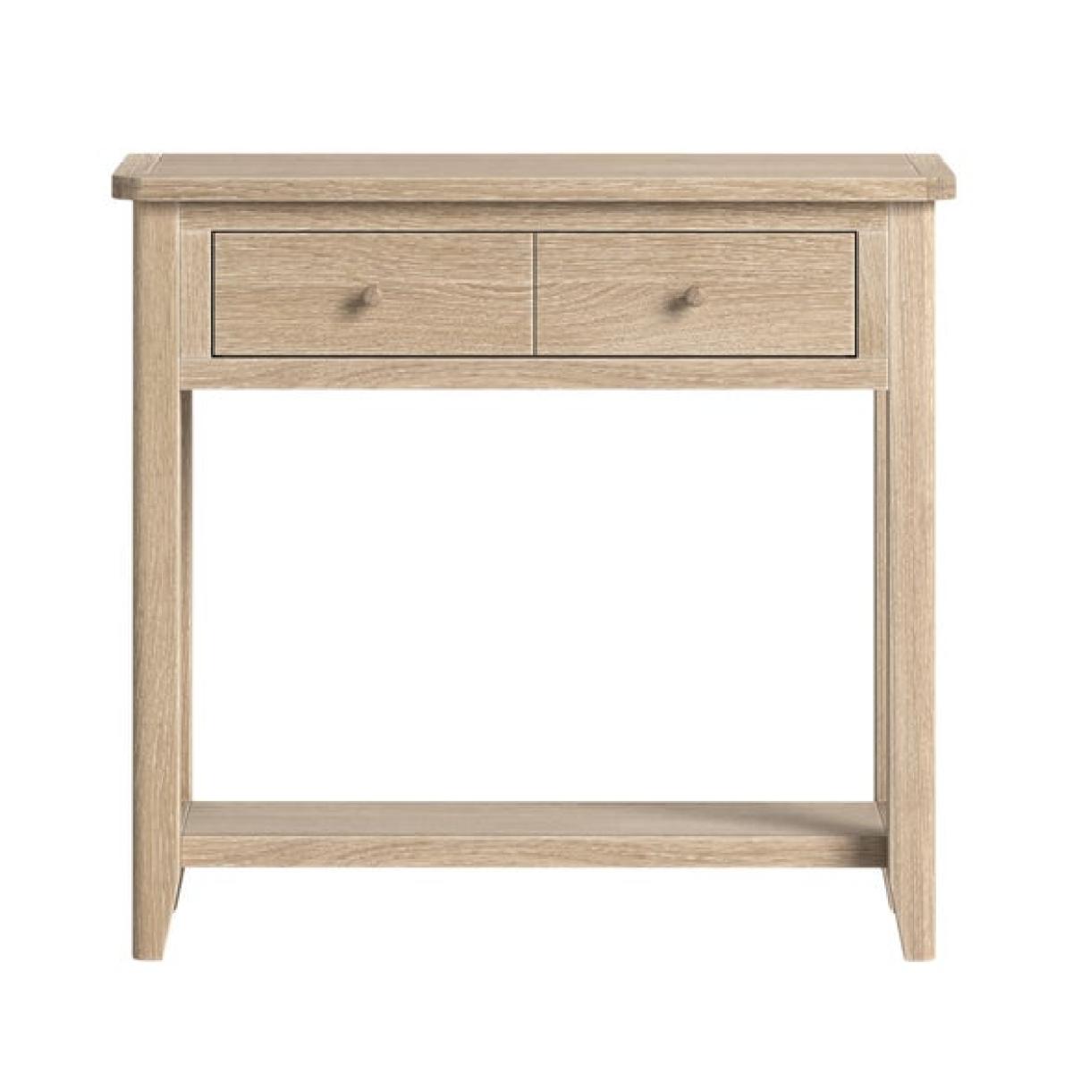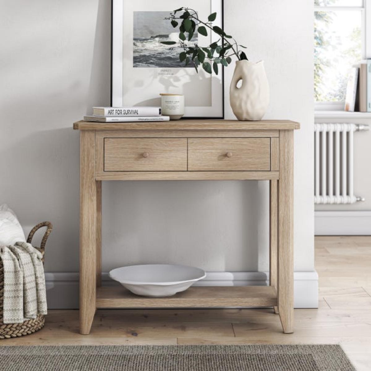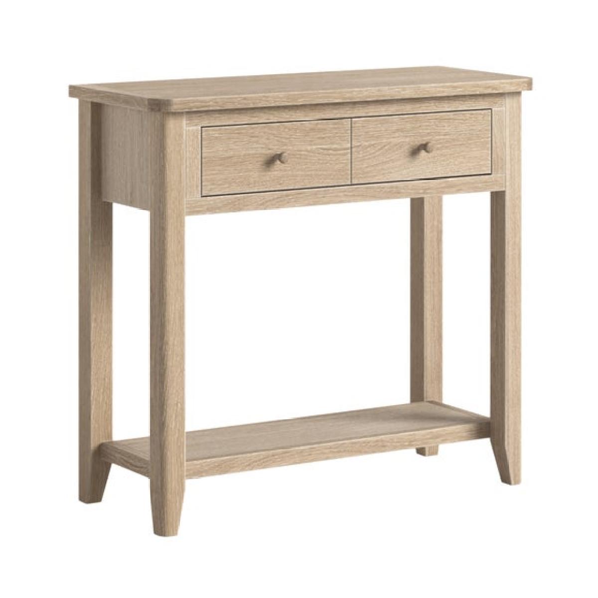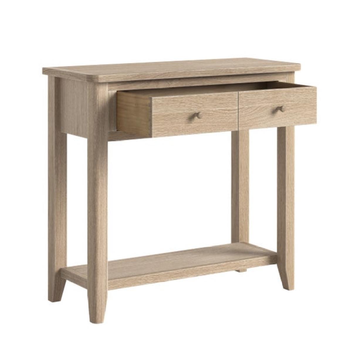 Dunelm Exclusive - Designed and Developed by Dunelm * Oak and Pine frame * Painted finish * Wooden or Metal handles available An elevated version of the Bromley everyone knows and loves, this Bromley console table brings refined charm and practical design to your hallway or living space. Available in grey, oak, and sage finishes, this upgraded piece features a streamlined silhouette and includes both wooden and metal handles, allowing you to tailor the look to your style.