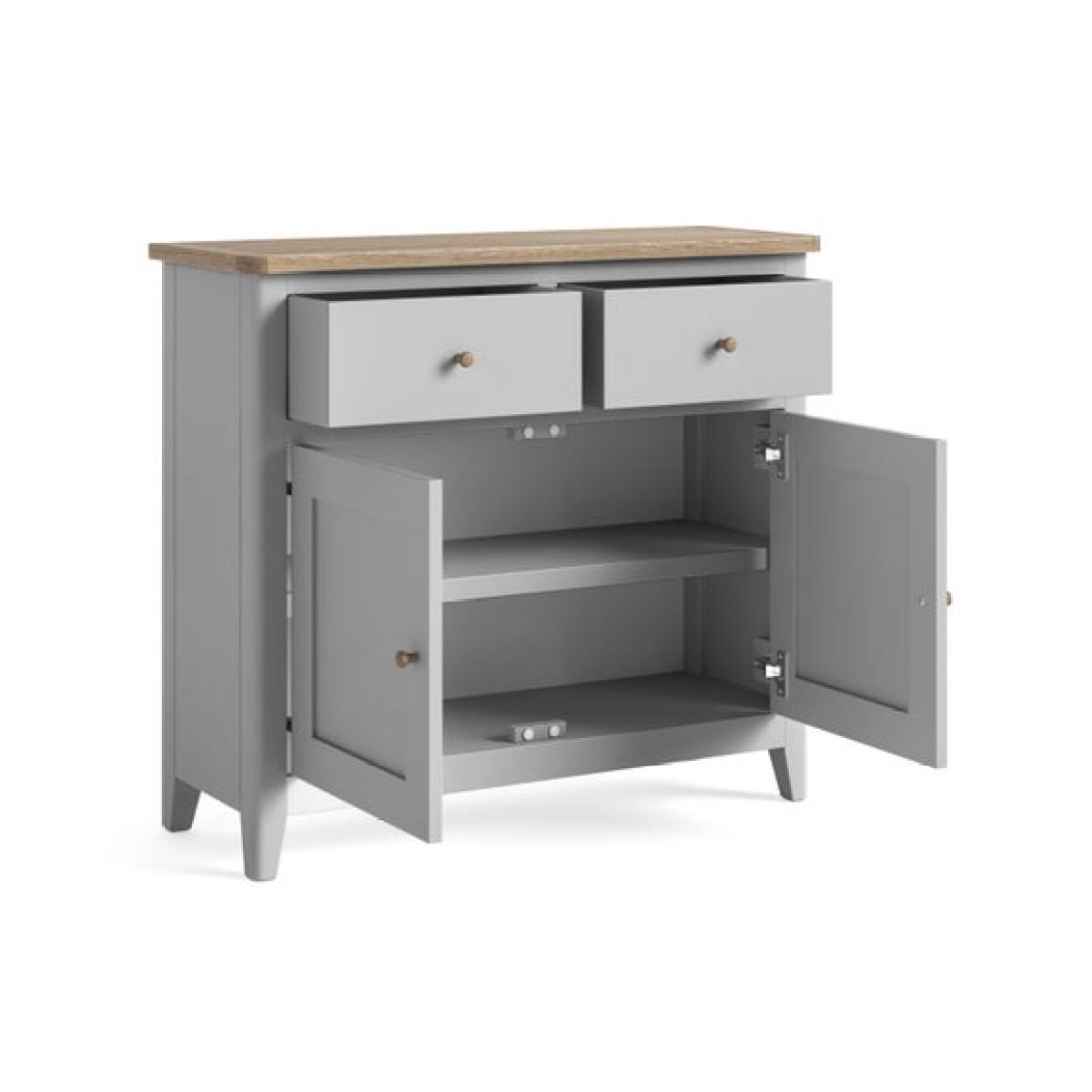 Dunelm Exclusive - Designed and Developed by Dunelm * Oak and Pine frame * Painted finish * Wooden or Metal handles included This Bromley small sideboard is a refined reimagining of a Bromley favourite, offering compact storage with a premium finish. Available in grey, oak, and sage, this fully assembled piece features internal shelving and comes with both wooden and metal handles, giving you flexibility in styling. It’s ideal for dining rooms, hallways, or anywhere you need a touch of elegant organisation.