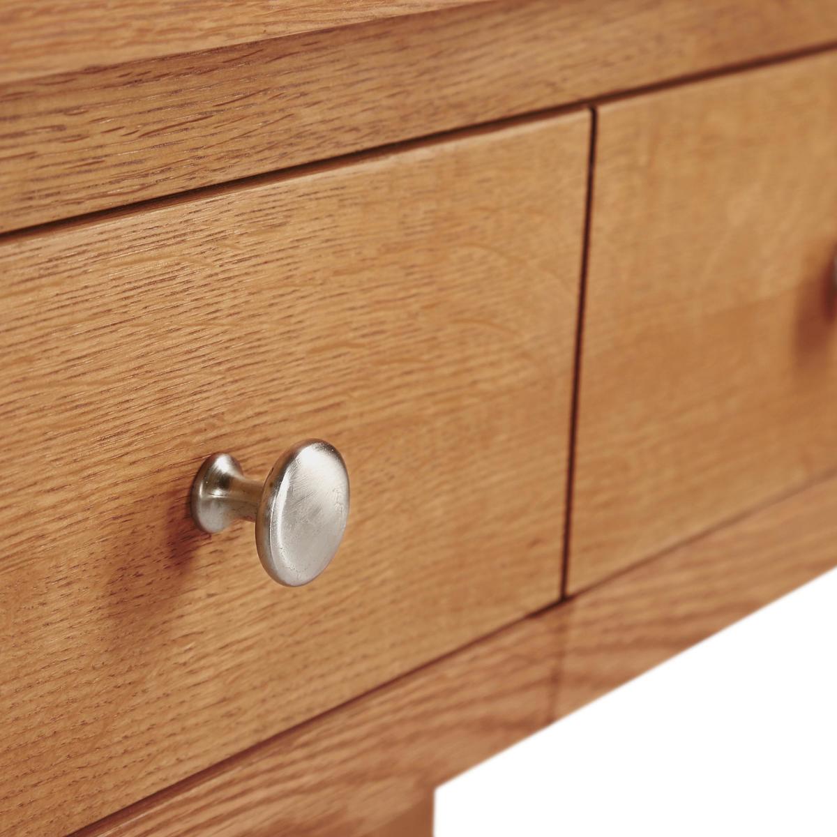 Dunelm Exclusive – Designed and Developed by Dunelm. The Bromley range is ideal for adding a country classic touch to your home, whilst having the advantage and flexibility of furnishing the most compact of living spaces. Constructed from a solid wood and oak veneer, each piece features a natural colourway with a contrasting wax finish. Supplied with smooth sliding drawers, this range comes complete with beautiful silver finished metal handles, perfect for a range of rooms in the home. Designed to maximise storage space, the Bromley oak console table features a large drawer and a low fixed shelf.