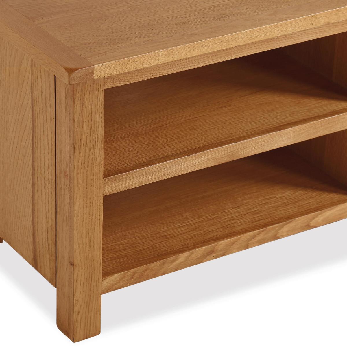 The Bromley Oak TV stand is a versatile piece that works particularly well in cosy, natural-themed interiors or farmhouse-inspired schemes. I love its warm oak finish which adds a touch of understated elegance without overpowering the space. Practical styling tips would include layering with carefully curated decorative items like simple vases, books, or small potted plants to keep it looking tidy yet inviting. Its open shelves provide a perfect spot for media devices or for displaying favourite accessories, while the enclosed cabinet offers storage for clutter, maintaining a clean aesthetic. Overall, it’s a practical and timeless addition that can anchor a living room or lounge, complementing neutral palettes and rustic or modern interiors alike.