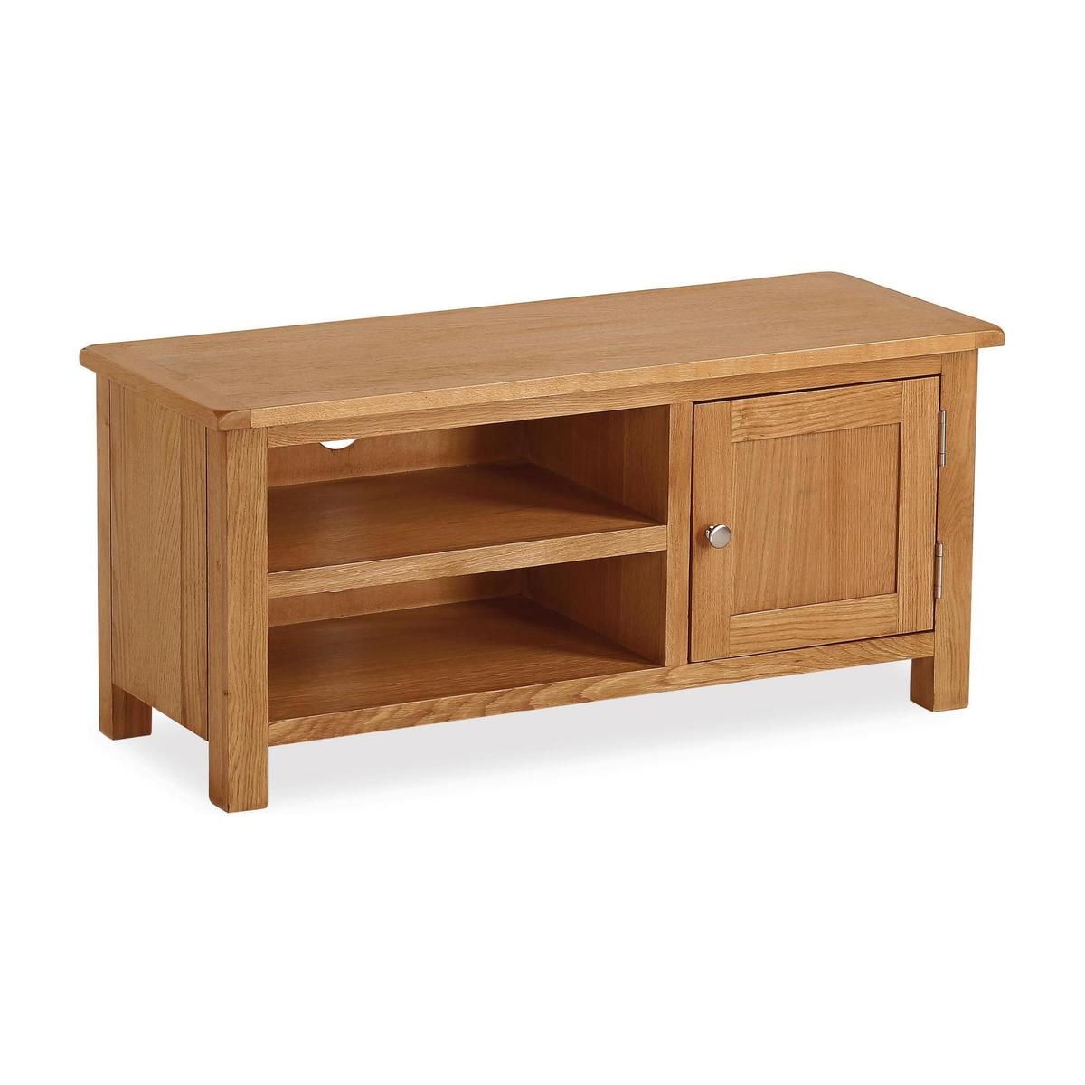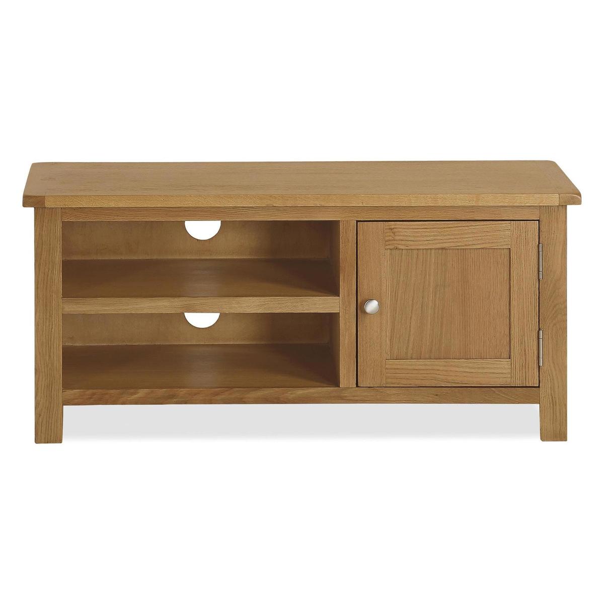 Dunelm Exclusive – Designed and Developed by Dunelm The Bromley range is ideal for adding a country classic touch to your home, whilst having the advantage and flexibility of furnishing the most compact of living spaces. Constructed from a solid wood and oak veneer, each piece features a natural colourway with a contrasting wax finish. Supplied with smooth sliding drawers, this range comes complete with beautiful silver finished metal handles, perfect for a range of rooms in the home. Suitable to match an array of interiors, this simplistic and stylish TV stand features a fixed shelf and a cupboard with internal shelf for storage space and cable access.