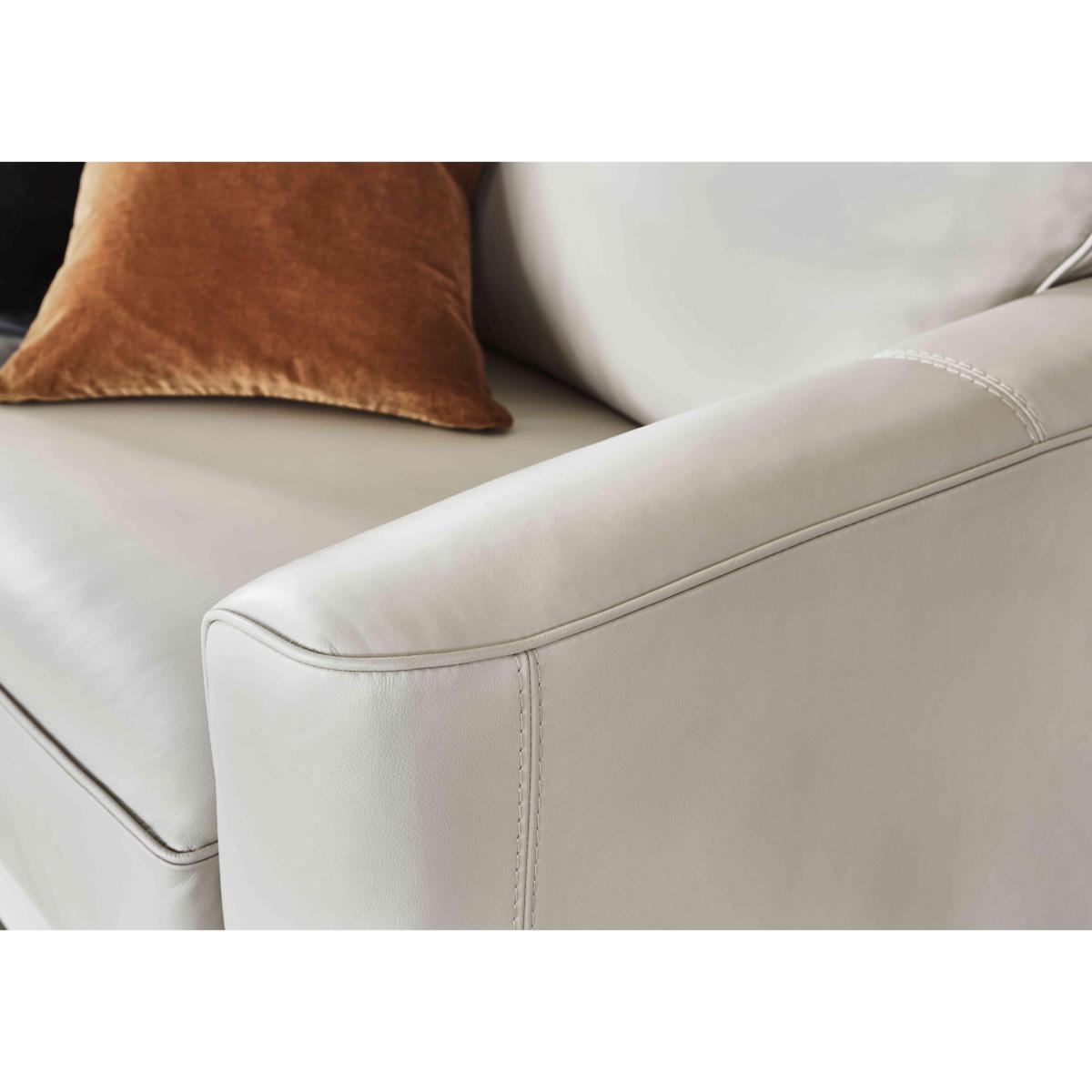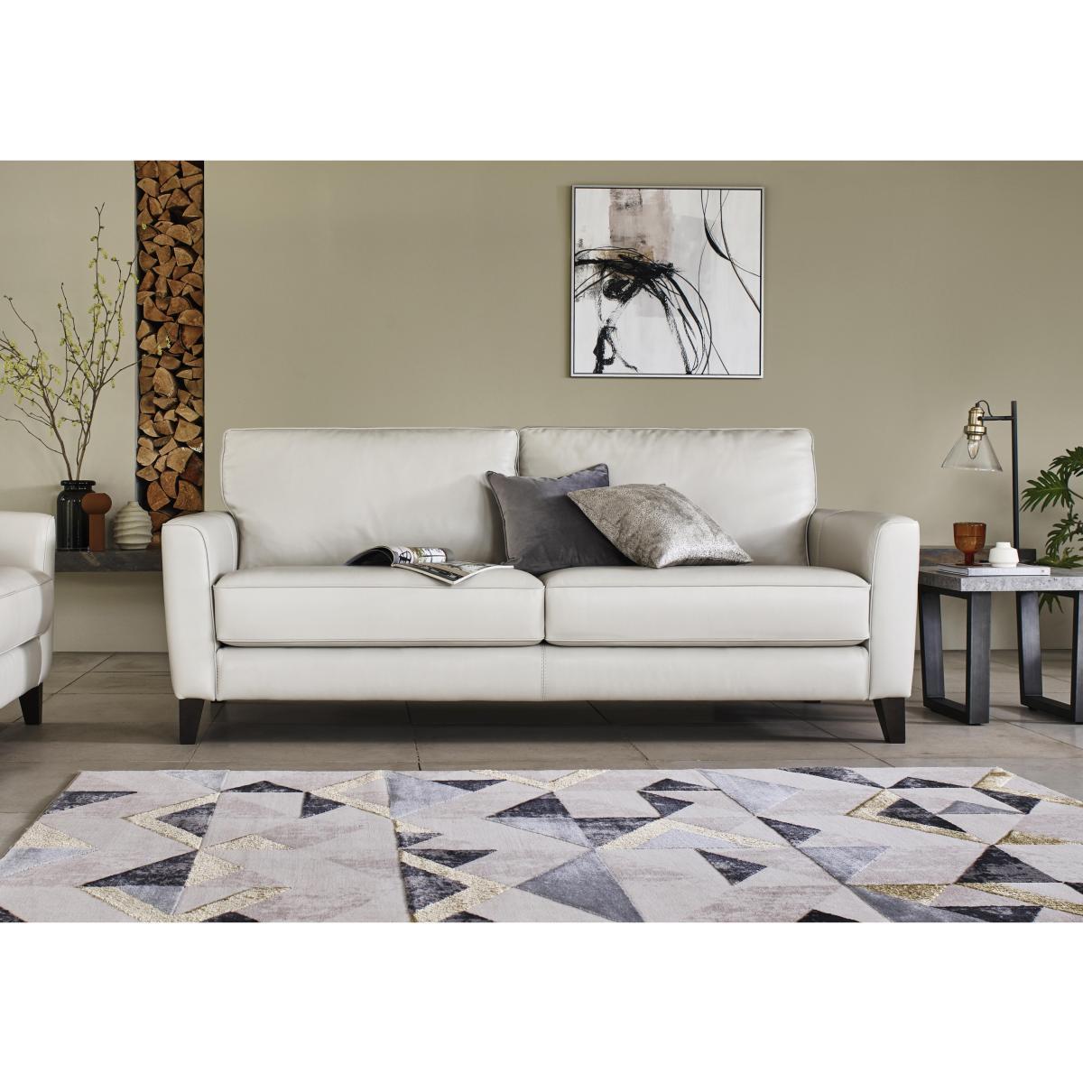 Beautifully compact, the Brondby corner sofas, sofas and chairs suit first homes, studio apartments and open plan living. Their open bases and slim arms create a feeling of extra space, while the storage footstool doubles as a coffee table or extra seating. Contemporary style is matched with well thought out practicality. The soft-feel fabric or 100% leather upholstery is hardwearing, and the seat cushions can be moved to ensure even wear. Comfy bolster cushions are included with the sofas. Exclusive to Furniture Village at a great value price. Cool, comfy and compact. Make the most of your space with the Brondby three seater leather sofa. It looks and feels superb, and is a great choice for smaller rooms and open plan living. Why you’ll love it. Compact design is perfect for smaller spaces. Super stylish, contemporary silhouette. Soft yet hardwearing 100% leather upholstery. In a choice of colours. Slim arms. Tapered dark wood legs. Seat cushions can be rotated to reduce wear. A Furniture Village exclusive, at a great value price. What you need to know. Medium comfort level. Sturdy hardwood and plywood frame. Dark wood legs, finished in a clear matt lacquer. Luxury fibre filled back cushions. High-density foam with fibre seat cushions keep their shape for longer. No-sag, serpentine springs. Rubber webbing back suspension. Natural leather has unique marks and characteristics with variance in colour and texture, and softens with use. Smoothing seat cushions prevents ‘puddling’. Plump, turn and rotate seat and back cushions if possible. Please read our. Upholstery care guide. For more advice. Part of the Brondby range in leather or fabric.