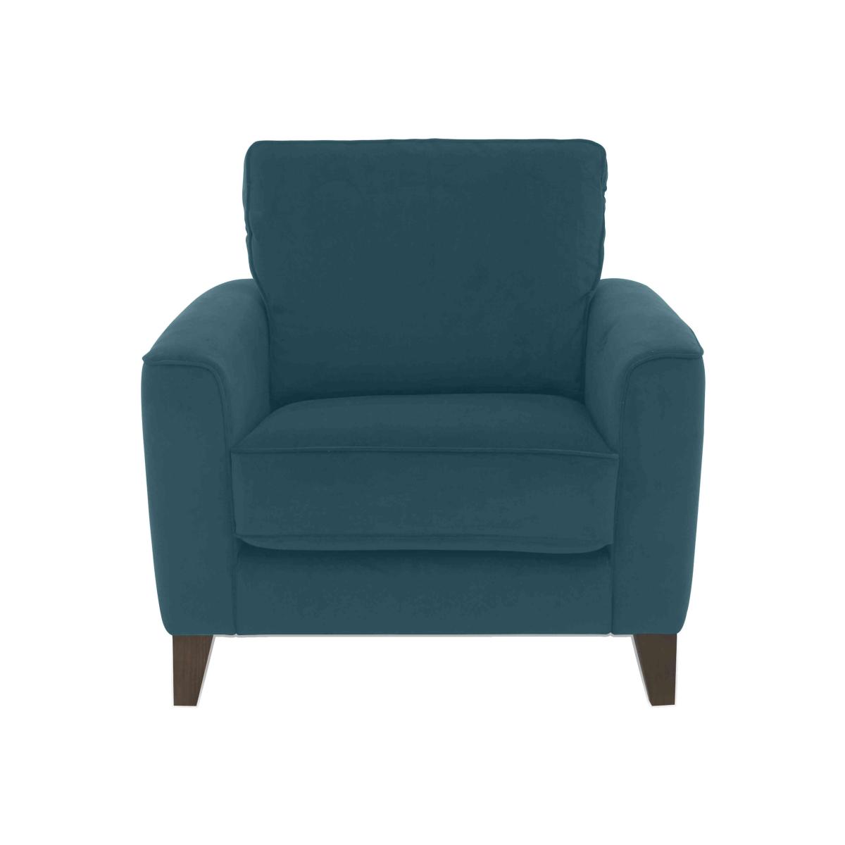 I’m a fan of the lake green armchair for its rich, slightly muted tone and tailored profile - it’s equally at home in a Scandi-inspired lounge or a more eclectic sitting room. The slim, dark-stained legs lift the piece off the floor, keeping the look light, and the hard-wearing fabric means it will cope well with everyday use. To style it, tuck it into a cosy reading corner with a slim oak side table and a tactile wool throw in a complementary shade (think soft terracotta or warm charcoal). A patterned cushion adds interest - geometric or botanical prints work well - and a simple floor lamp behind the chair ensures you’ve got plenty of light for evenings spent with a book. Regularly vacuum the fabric and turn the seat cushion to maintain its shape.