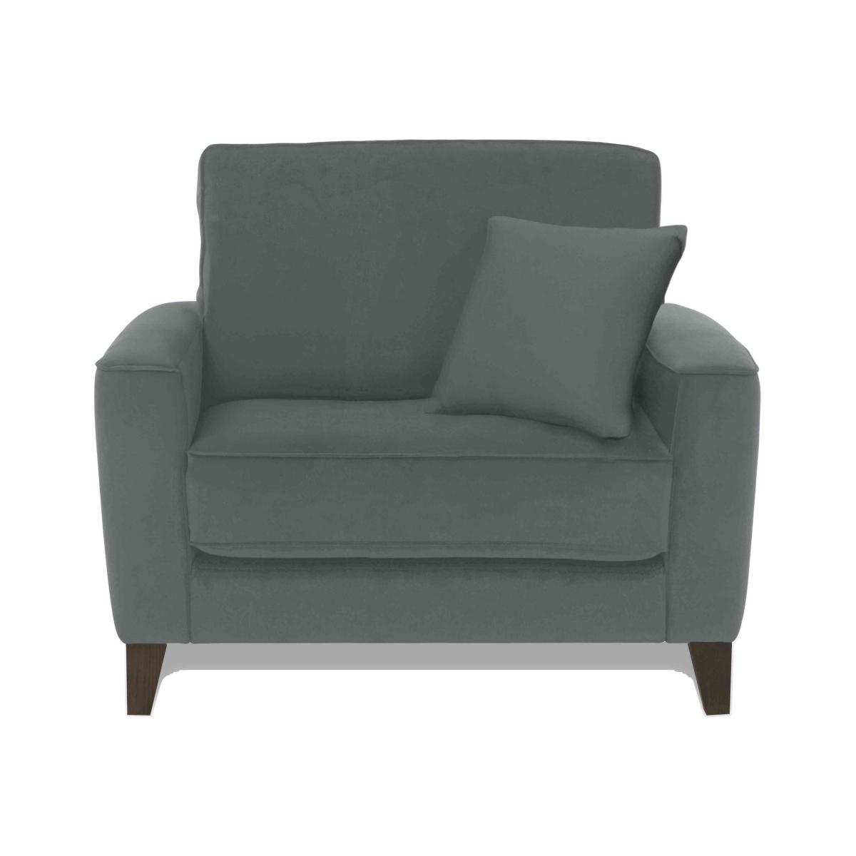 Beautifully compact, the Brondby corner sofas, sofas and chairs suit first homes, studio apartments and open plan living. Their open bases and slim arms create a feeling of extra space, while the storage footstool doubles as a coffee table or extra seating. Contemporary style is matched with well thought out practicality. The soft-feel fabric or 100% leather upholstery is hardwearing, and the seat cushions can be moved to ensure even wear. Exclusive to Furniture Village at a great value price. This stylish cuddle chair makes the most of a smaller space, especially as there's room for two on this cosy and compact loveseat. Why you’ll love it Compact size, contemporary style, incredible price. Fashionable off-the-floor look with slim arms and tapered legs. Ultra-comfy sprung seat with high-density foam cushioning that keeps its shape. Free scatter cushion included. Luxe fabric in a choice of colours. Also available in 100% leather. A Furniture Village exclusive. This cuddle chair is part of our Brondby range. What you need to know Medium comfort level. Seat suspension: no-sag serpentine springs. Seat cushioning: high-density foam and fibre. Back suspension: rubber webbing. Back cushioning: luxury fibre. Wood legs are finished in a clear matt lacquer. Some fabrics can show wear on areas of more use or in direct sunlight. Plump, turn and rotate seat and back cushions regularly. Please read our upholstery care guide for more advice.