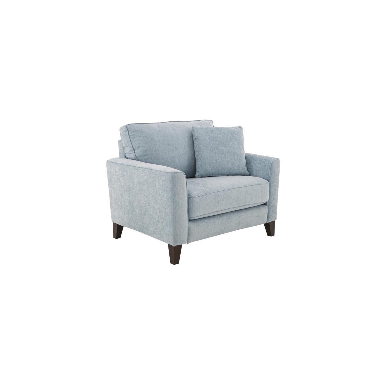 This stylish cuddle chair makes the most of a smaller space, especially as there's room for two on this cosy and compact loveseat. Why you’ll love it Compact size, contemporary style, incredible price. Fashionable off- the- floor look with slim arms and tapered legs. Ultra- comfy sprung seat with high- density foam cushioning that keeps its shape. Free scatter cushion included. Luxe fabric in a choice of colours. Also available in 100% leather. A Furniture Village exclusive. This cuddle chair is part of our Brondby range. What you need to know Medium comfort level. Seat suspension: no- sag serpentine springs. Seat cushioning: high- density foam and fibre. Back suspension: rubber webbing. Back cushioning: luxury fibre. Wood legs are finished in a clear matt lacquer. Some fabrics can show wear on areas of more use or in direct sunlight. Plump, turn and rotate seat and back cushions regularly. Please read our upholstery care guide for more advice.