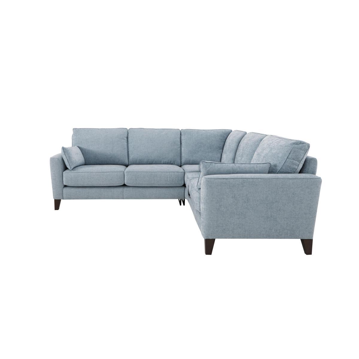 Beautifully compact, the Brondby corner sofas, sofas and chairs suit first homes, studio apartments and open plan living. Their open bases and slim arms create a feeling of extra space, while the storage footstool doubles as a coffee table or extra seating. Contemporary style is matched with well thought out practicality. The soft-feel fabric or 100% leather upholstery is hardwearing, and the seat cushions can be moved to ensure even wear. Comfy bolster cushions are included with the sofas. Exclusive to Furniture Village at a great value price. It feels large and roomy, but this fabric corner sofa is surprisingly compact. Which is why this space-saving corner sofa is the perfect choice for smaller living rooms and for open plan living. Why you’ll love it. Beautifully compact, yet this corner sofa seats a crowd. Makes the most of smaller spaces. Super stylish, contemporary silhouette. Soft-feel, yet hardwearing chenille upholstery. Slim arms. Tapered dark wood legs. Two comfy bolster cushions are included. A Furniture Village exclusive, at a great value price. What you need to know. Medium comfort level. Herringbone chenille upholstery in a choice of on trend colours. Sturdy hardwood and plywood frame. Dark wood legs, finished in a clear matt lacquer. Luxury fibre filled back cushions. High-density foam with fibre seat cushions keep their shape for longer. No-sag, serpentine springs. Rubber webbing back suspension. Two bolster cushions are included, in the same fabric as the sofa. Bolster cushions are fibre filled. Some fabrics can show wear on areas of more use or in direct sunlight. Plump, turn and rotate seat and back cushions regularly. Please read our. Upholstery care guide. For more advice. Part of the Brondby range in fabric or leather.