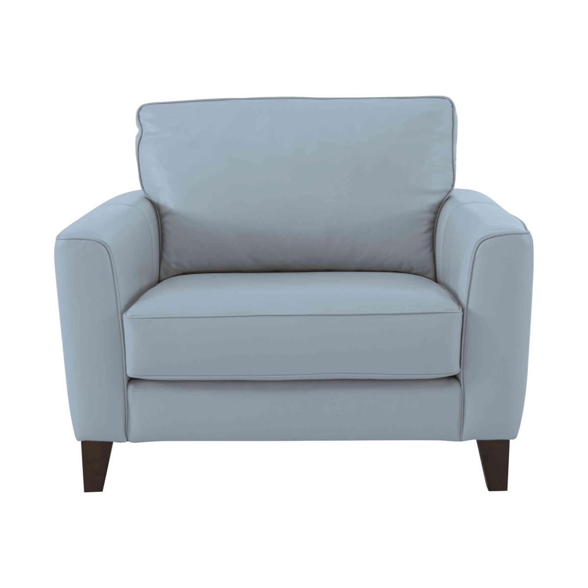 Beautifully compact, the Brondby corner sofas, sofas and chairs suit first homes, studio apartments and open plan living. Their open bases and slim arms create a feeling of extra space, while the storage footstool doubles as a coffee table or extra seating. Contemporary style is matched with well thought out practicality. The soft-feel fabric or 100% leather upholstery is hardwearing, and the seat cushions can be moved to ensure even wear. Exclusive to Furniture Village at a great value price. Cuddle up with someone you love in this cosy and compact cuddle chair or love seat, or keep it all to yourself. Neatly sized to be space-saving, it’s a comfy, stylish and great value choice. Why you’ll love it Compact design is perfect for smaller spaces. Super stylish, contemporary silhouette. Soft yet hardwearing 100% leather upholstery. In a choice of colours. Slim arms. Tapered dark wood legs. A Furniture Village exclusive, at a great value price. What you need to know Medium comfort level. 100% leather, family friendly upholstery in a choice of on trend colours. Sturdy hardwood and plywood frame. Dark wood legs, finished in a clear matt lacquer. Luxury fibre filled back cushion. High-density foam with fibre seat cushion keeps its shape for longer. No-sag, serpentine springs. Rubber webbing back suspension. Natural leather has unique marks and characteristics with variance in colour and texture, and softens with use. Smoothing the seat cushion prevents ‘puddling’. Plump, turn and rotate seat and back cushions if possible. Please read our upholstery care guide for more advice. Part of the Brondby range in leather or fabric.