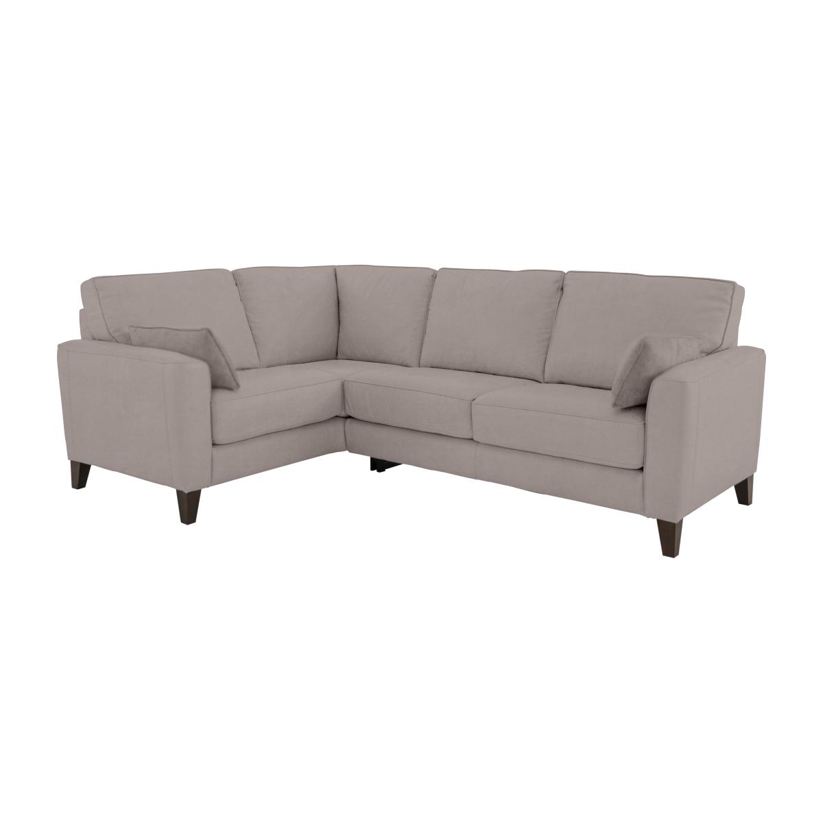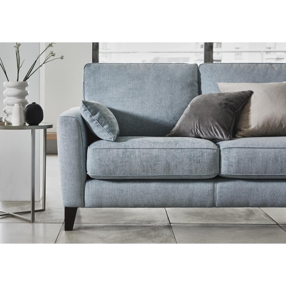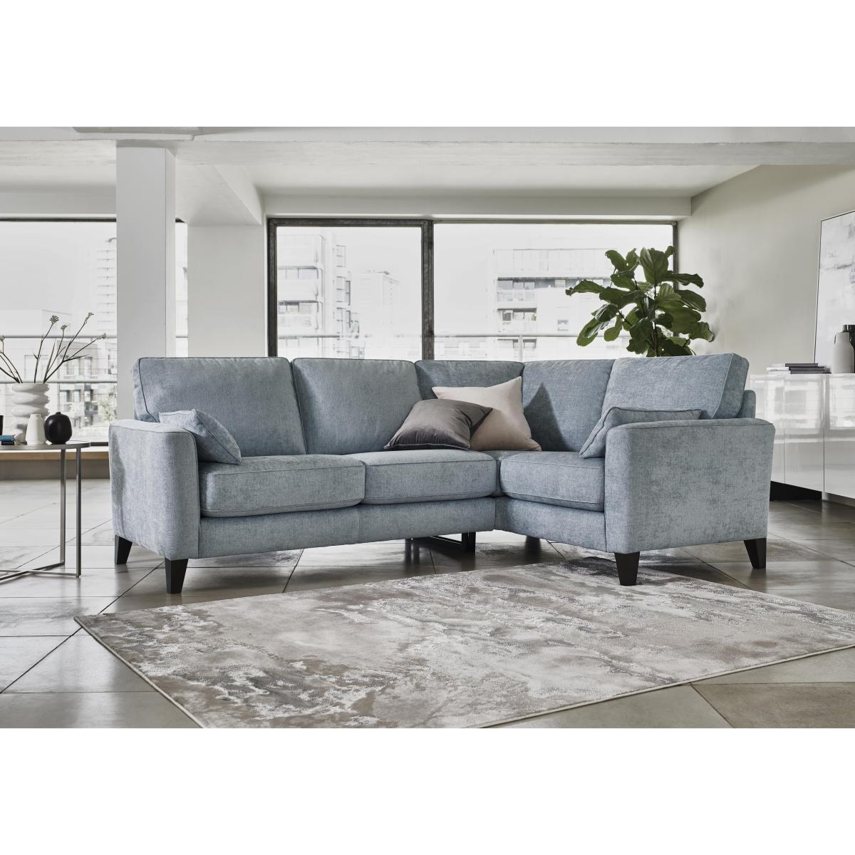 Beautifully compact, the Brondby corner sofas, sofas and chairs suit first homes, studio apartments and open plan living. Their open bases and slim arms create a feeling of extra space, while the storage footstool doubles as a coffee table or extra seating. Contemporary style is matched with well thought out practicality. The soft-feel fabric or 100% leather upholstery is hardwearing, and the seat cushions can be moved to ensure even wear. Exclusive to Furniture Village at a great value price. Introducing the very cool corner sofa that suits smaller rooms. The Brondby small fabric corner sofa makes the most of your space and feels surprisingly roomy. The price is very attractive too. Why you’ll love it Beautifully compact corner sofa suits smaller rooms. Super stylish, contemporary silhouette. Soft-feel, yet hardwearing chenille upholstery. Slim ams. Tapered dark wood legs. Two comfy bolster cushions are included. A Furniture Village exclusive, at a great value price. What you need to know Medium comfort level. Herringbone chenille upholstery in a choice of on trend colours. Sturdy hardwood and plywood frame. Dark wood legs, finished in a clear matt lacquer. Luxury fibre filled back cushions. High-density foam with fibre seat cushions keep their shape for longer. No-sag, serpentine springs. Rubber webbing back suspension. Two bolster cushions are included, in the same fabric as the sofa. Bolster cushions are fibre filled. Some fabrics can show wear on areas of more use or in direct sunlight. Plump, turn and rotate seat and back cushions regularly. Please read our upholstery care guide for more advice. Part of the Brondby range in fabric or leather.