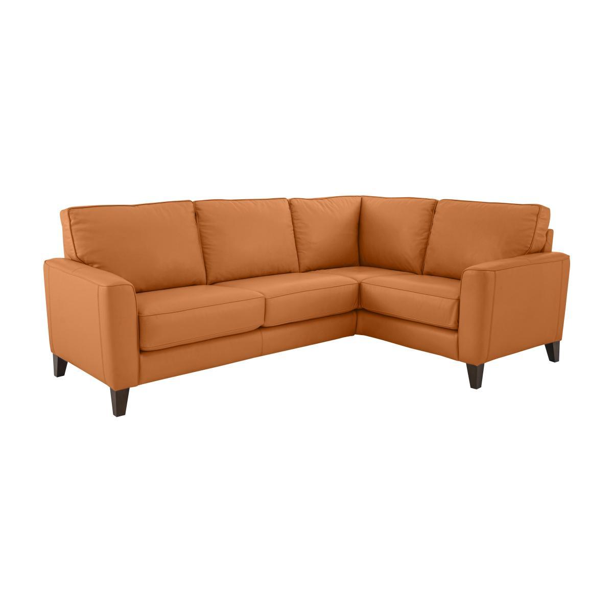 Beautifully compact, the Brondby corner sofas, sofas and chairs suit first homes, studio apartments and open plan living. Their open bases and slim arms create a feeling of extra space, while the storage footstool doubles as a coffee table or extra seating. Contemporary style is matched with well thought out practicality. The soft-feel fabric or 100% leather upholstery is hardwearing, and the seat cushions can be moved to ensure even wear. Comfy bolster cushions are included with the sofas. Exclusive to Furniture Village at a great value price. Who would have thought you could fit a corner sofa into a small room? This small leather corner sofa is incredibly stylish, and it feels surprisingly roomy. All for a great value price. Why you’ll love it. Beautifully compact corner sofa suits smaller rooms. Super stylish, contemporary silhouette. Soft yet hardwearing 100% leather upholstery. In a choice of colours. Slim arms. Tapered dark wood legs. Seat cushions can be rotated to reduce wear. A Furniture Village exclusive, at a great value price. What you need to know. Medium comfort level. Sturdy hardwood and plywood frame. Dark wood legs, finished in a clear matt lacquer. Luxury fibre filled back cushions. High-density foam with fibre seat cushions keep their shape for longer. No-sag, serpentine springs. Rubber webbing back suspension. Natural leather has unique marks and characteristics with variance in colour and texture, and softens with use. Smoothing seat cushions prevents ‘puddling’. Plump, turn and rotate seat and back cushions if possible. Please read our. Upholstery care guide. For more advice. Part of the Brondby range in leather or fabric.