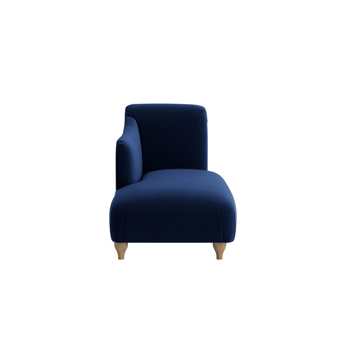 I really like this chaise for its clean, streamlined silhouette and rich navy fabric, which makes it a versatile piece for various interiors. It works particularly well in contemporary and modern spaces but can also add a luxe touch to traditional rooms when styled thoughtfully. To maximise its impact, consider pairing it with neutral tones or accent cushions in bold colours for contrast. Practical styling tips include placing it near a window or within a reading nook for functional elegance, and adding a small side table or a statement lamp to create a cosy, inviting corner. Its approachable size and stylish design make it a great addition to both living rooms and bedrooms, offering both comfort and a sophisticated visual anchor.