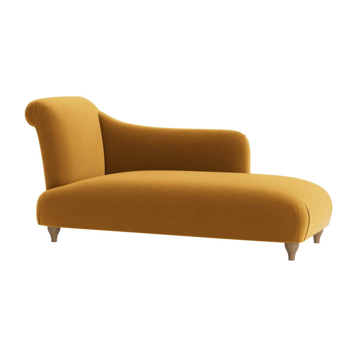 I love the Brontë chaise for its elegant yet versatile shape, which can anchor a variety of interiors, from contemporary to classic. Its striking mustard hue adds a pop of colour that works brilliantly as a statement piece in a neutral space, but it also pairs well with deeper tones like navy or charcoal for a richer look. When styling, consider keeping surrounding accessories minimal to let the chaise shine, or contrast it with textured cushions or throws for added comfort and visual interest. It’s perfect in a cosy reading nook or as a relaxing spot in a larger living area, and its low profile makes it a functional yet stylish addition without overpowering the room.