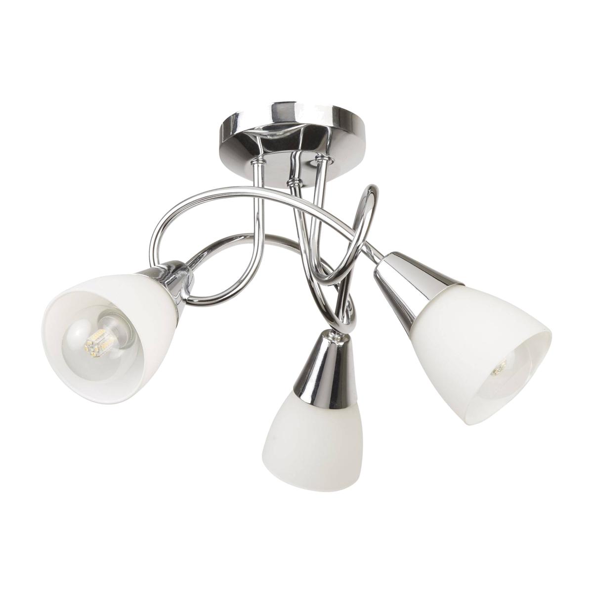 Modern semi flush ceiling light in polished chrome. The elegant Bronx 3 Light Semi Flush Ceiling Light features 3 intertwined arms finished in polished chrome with delicate opal glass light shades. This ceiling light will add a sophisticted touch to your home decor. To compliment the opal glass shades we recommend our 4w E14 LED Coated Mini Globe bulbs to complete this light.