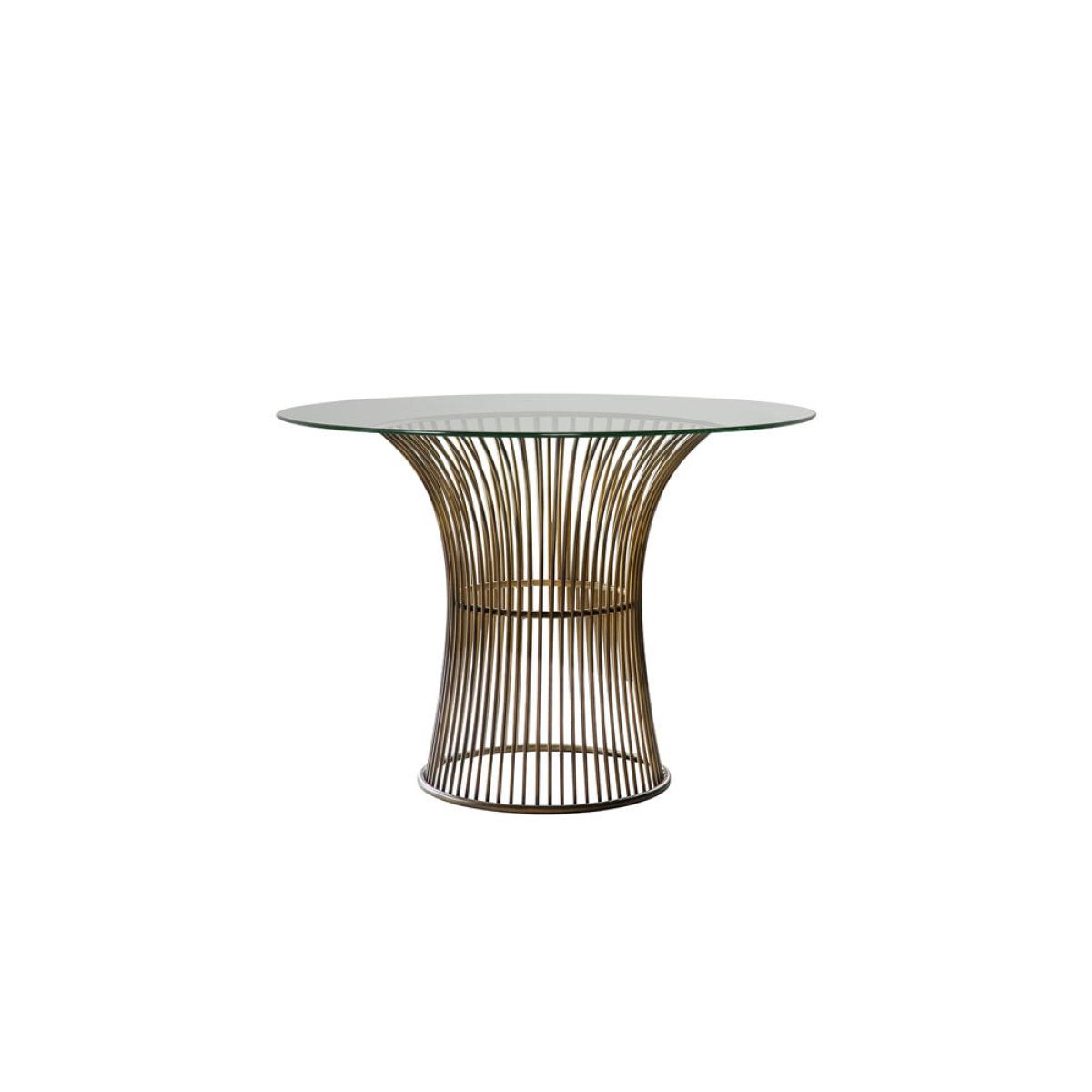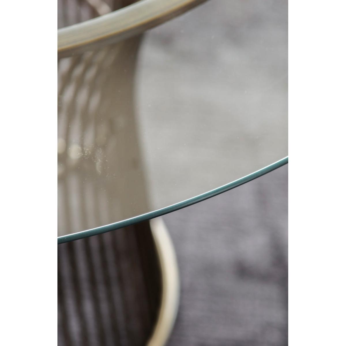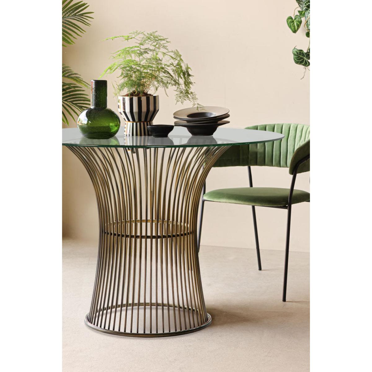 <!--td --> The Bronze & Glass Round Dining Table is the statement piece that your home has been missing. Made with a glamorous curved metal base in brushed bronze, this round glass dining table is finished with a tempered glass top to complete the luxe look. Glass tables are a great trick for smaller spaces as the transparent nature of the top helps to achieve the illusion of extra space. The round design is another big tick against this fabulous glass top dining table. A small round dining table is the dream for hosting as they bring everyone together and help spark the best conversations. So, why not invest in the Bronze & Glass Round Dining Table to bring more magical nights of noise and laughter to life at home?- Round glass dining table with a bronze metal base- Measures: W110cm x D110cm x H76cm- Seats 4 people - Please note that some self-assembly is required