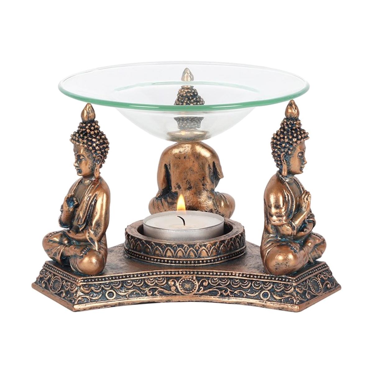 Bronze Buddha Oil Burner with 3 Meditating Buddhas - Bronze