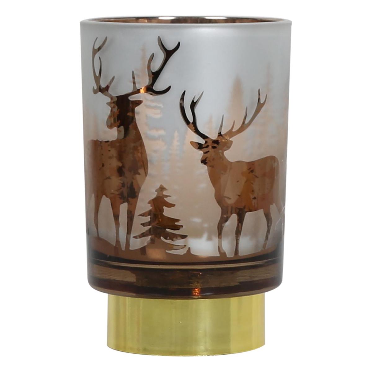 Add a cosy touch to your festivities with this Bronze LED Deer Scene Lamp. This lamp will bring a warm glow to your space and reveal a stunning deer scene amongst trees. Perfect for the festive season, this lamp is a charming finishing touch to your Christmas decorations.