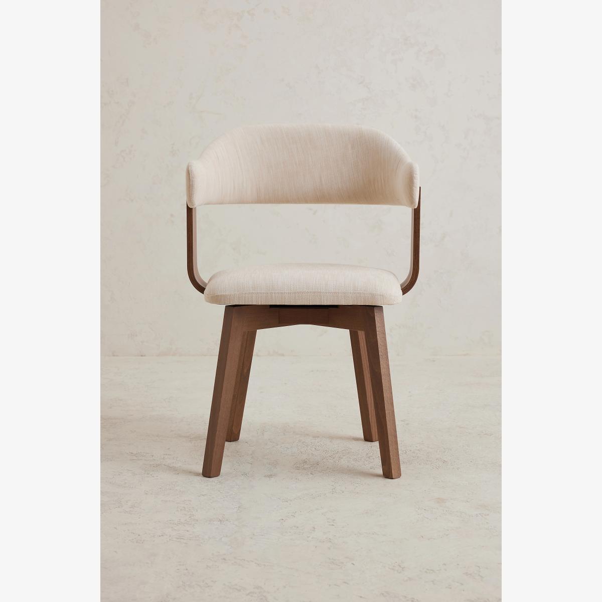 Crafted in Italy of sustainably sourced 100% FSC, solid beech wood, this cotton-upholstered swivel chair provides optimal functionality, to accompany a dining table, bedroom dresser, or as a seat for your home office. * Sustainably sourced using FSC, solid beech wood; Walnut finish * Cotton upholstery; Foam fill * 180-degree rotation * Intended for indoor use * Furniture pieces weighing over 30kg include delivery to your room of choice and packaging removal * If you have any doubts about the best cleaning solution to use or the process, seek the advice of a professional upholstery cleaning specialist * All packaging is recycled and recyclable * Designed in Britain * Made in Italy