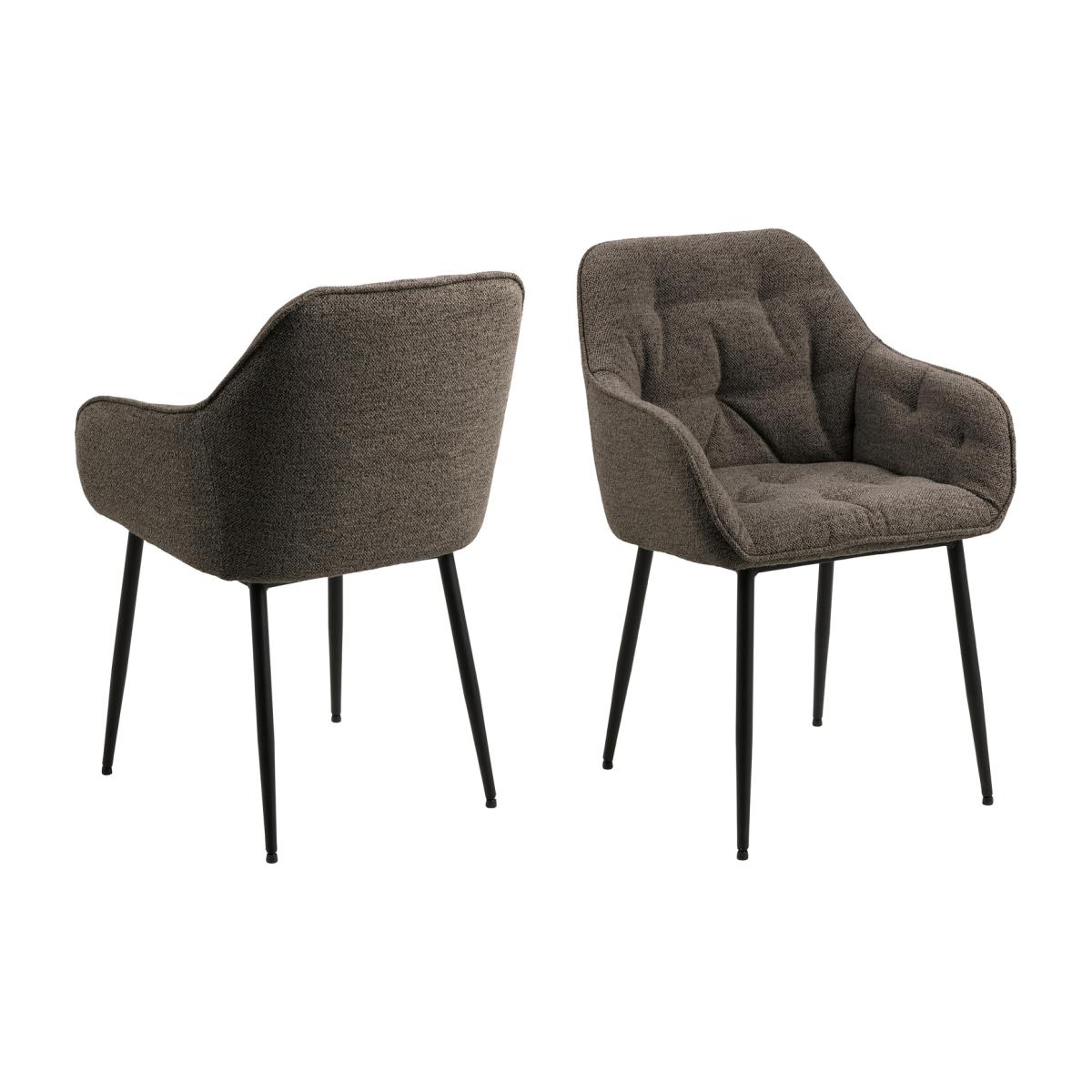Elevate your dining space with this Pair of Brooke Dining Chairs with Armrests. This stunning dining chair is perfect for adding a touch of sophistication to your interiors. It effortlessly combines comfort and style, featuring plush bouclé fabric complemented by elegant tufting details. The clean silhouette is enhanced by sleek black steel legs, creating a modern yet timeless look that fits seamlessly into any dining area. The inclusion of armrests adds an extra layer of relaxation, making it the perfect choice for leisurely meals and entertaining guests.