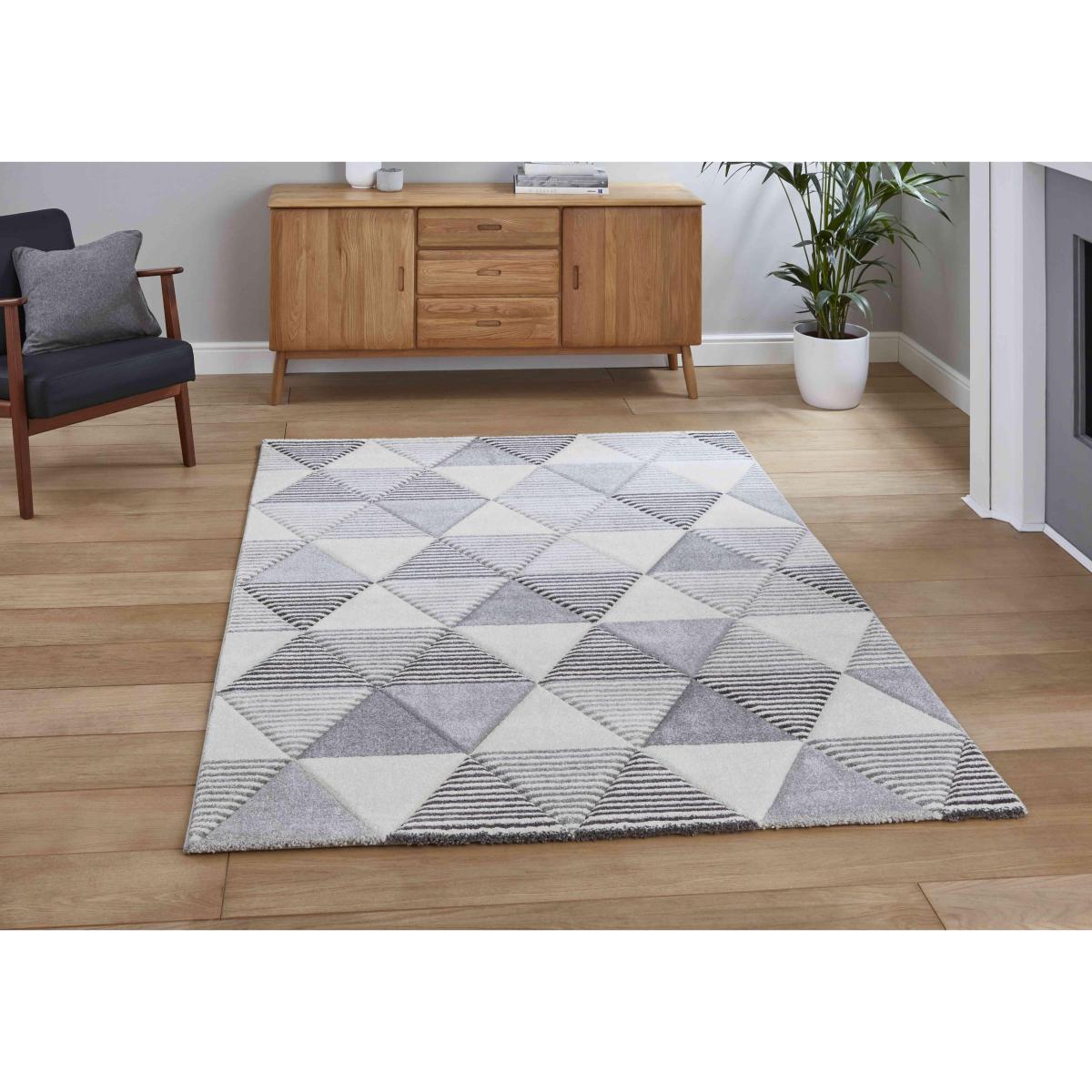 Geometric shapes meet on-trend shades in the Brooke rug. A stunning design that demands attention. Why you'll love it. It’s ready to elevate any interior. Contemporary triangle design. Quality you can feel. Carved lines emphasise its unique pattern. Made in Turkey for Furniture Village. What you need to know. 100% polypropylene. Soft pile. Durable and easy to clean. For indoor use only.