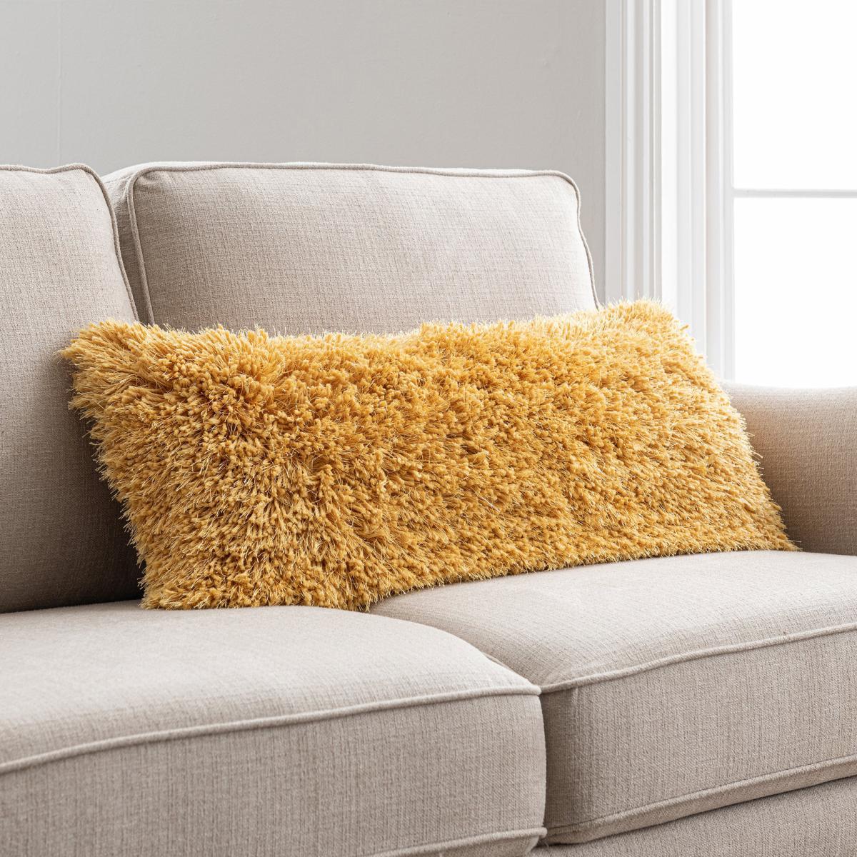I love this rectangle cushion for adding a cosy, tactile element to a variety of interiors. Its vibrant yellow shade instantly lifts a neutral colour palette and introduces warmth, making it ideal for contemporary or eclectic spaces. It works particularly well on sofas, armchairs, or even beds where a pop of colour can refresh the look. For practical styling, consider pairing it with contrasting textures like linen or velvet, or layering it with patterned cushions for added depth. Its plush, shaggy texture also makes it perfect for creating a relaxed, inviting atmosphere, especially in living rooms and bedrooms where comfort is key.