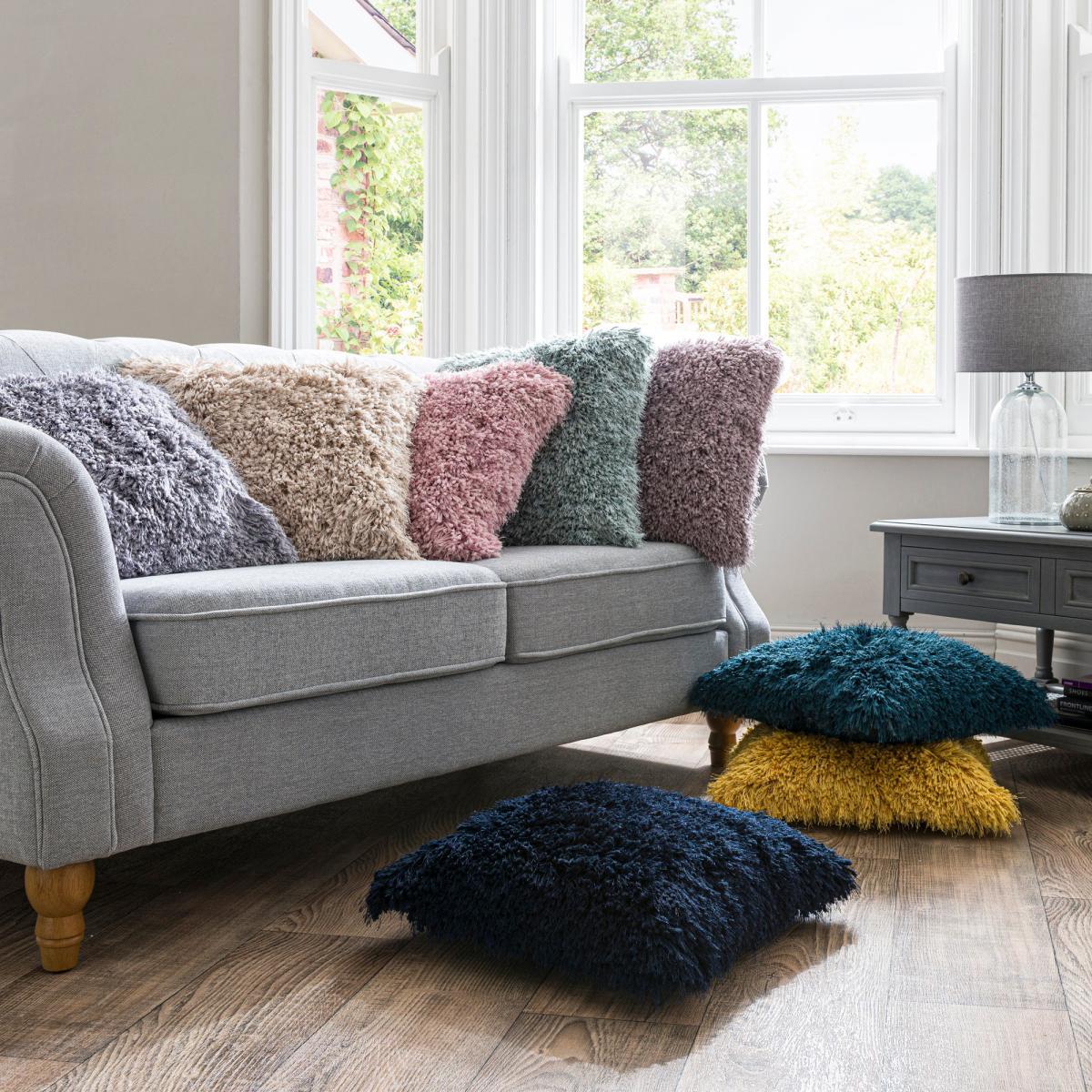 Styled in a choice of colours and featuring a new and improved design, this square cushion comes complete with a soft shaggy texture and a smooth, plain contrasting reverse. Generously filled with plump polyester hollowfibre filling for added comfort.