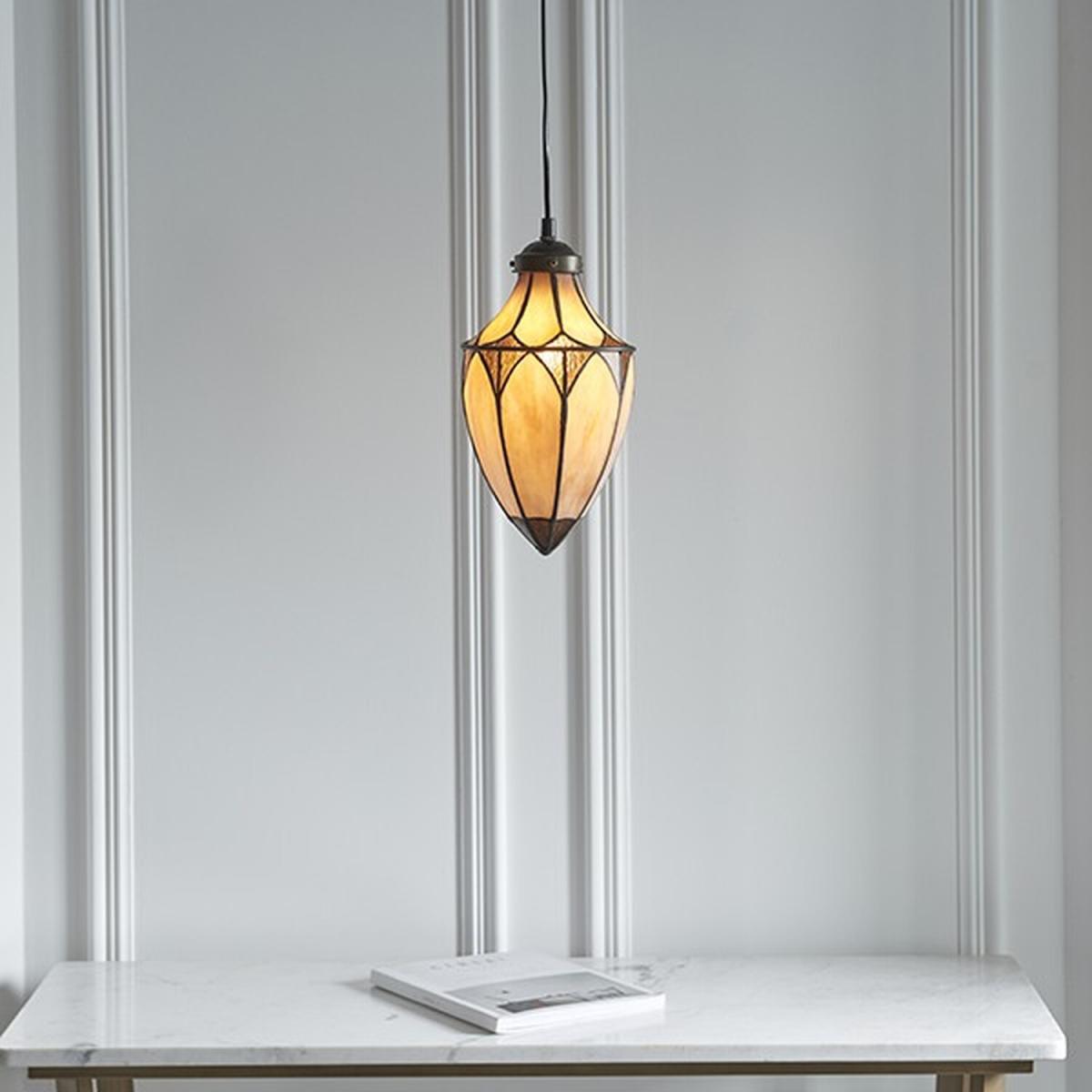 I love the Brooklyn pendant for its classic Tiffany glass design and rich dark bronze finish, which adds warmth and elegance to any space. It works particularly well in vintage-inspired or eclectic interiors, but can also bring a touch of timeless charm to more modern schemes. When styling, consider using it in cosy kitchens, hallways, or dining areas to create a focal point. Practical tips include hanging it at eye level or slightly above in dining or sitting areas for optimal ambiance, and pairing with dimmable bulbs to adjust the mood. Its size and classic aesthetic make it versatile, so it pairs beautifully with both neutral tones and more vibrant colour schemes.