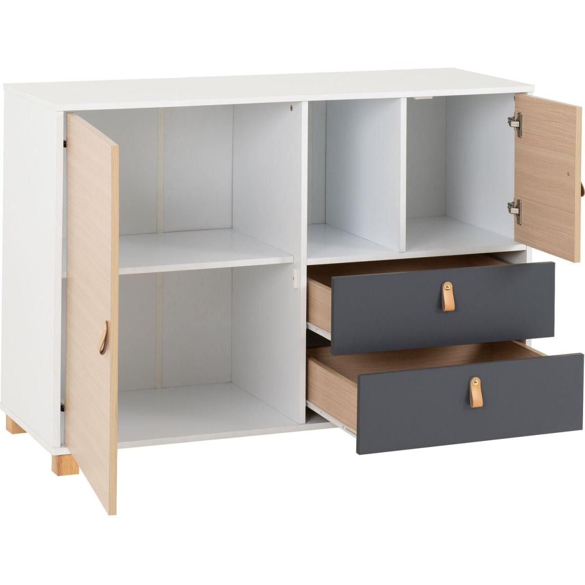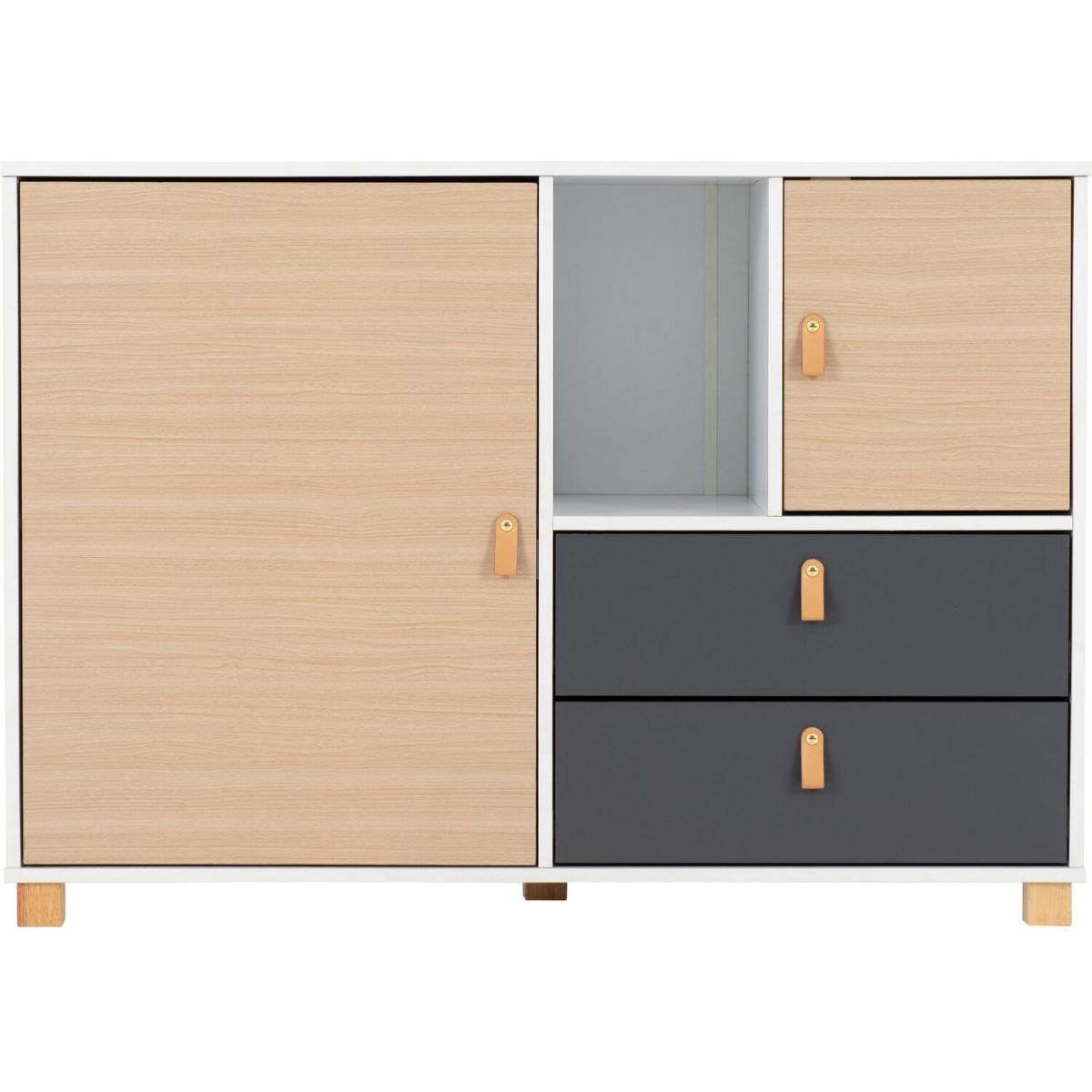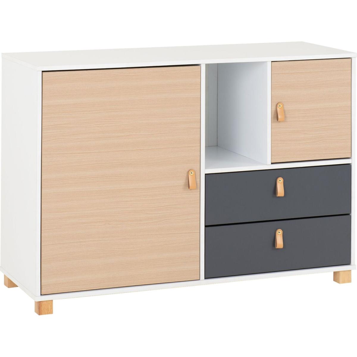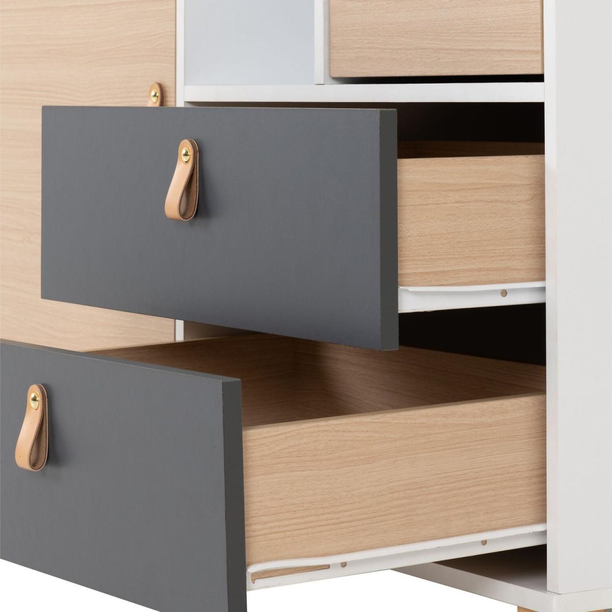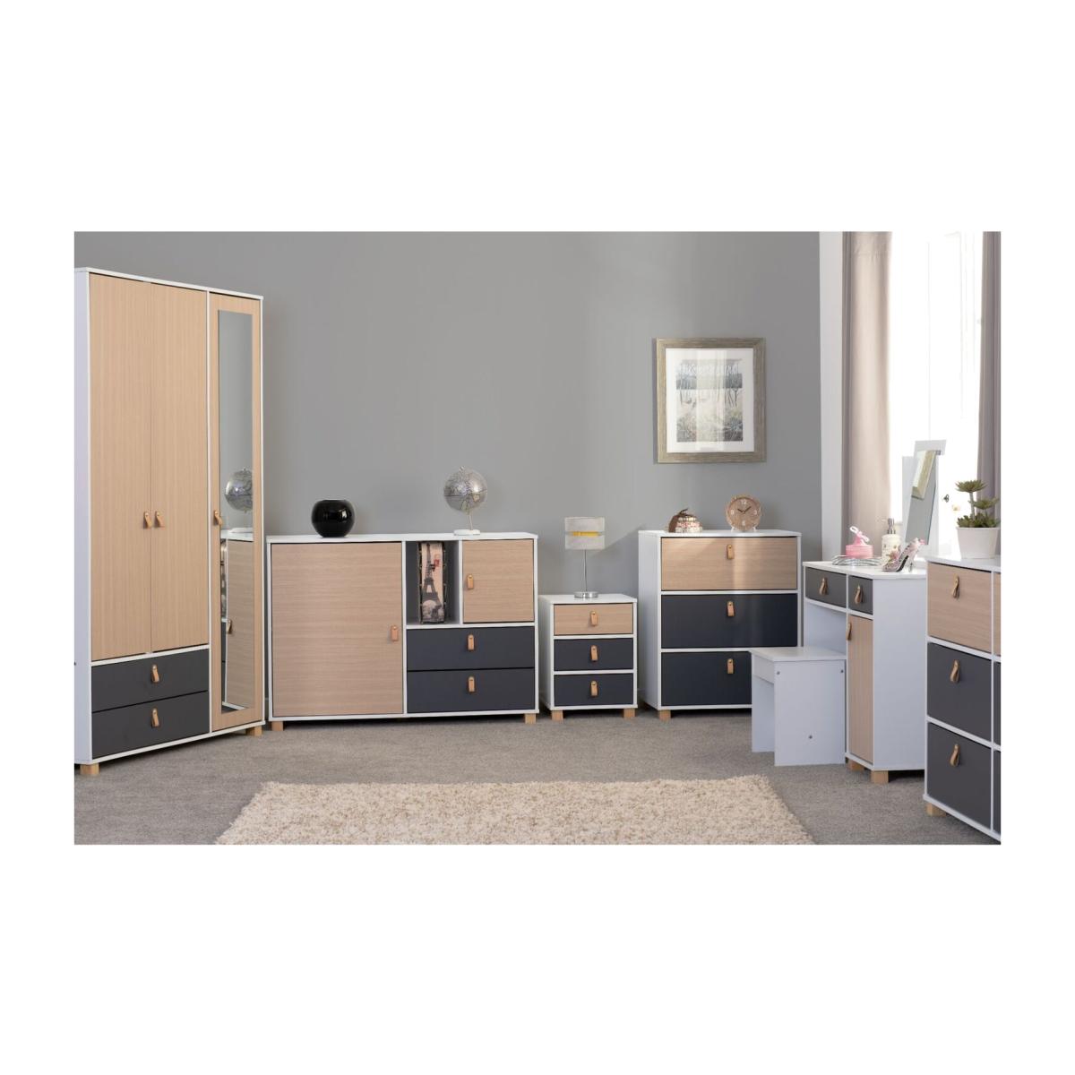 This modern chest of drawers table comes in this stunning multiple coloured design white, oak effect and grey. Fit with unique and easy to use faux leather handles and large drawer and shelf space. A perfect storage and design solutions to your bedroom needs. UK Mainland delivery only, between 9am - 9pm (weekdays) the courier will contact you on the day of delivery to offer a time slot. This takes place within 10 working days (Ground floor only). Please also ensure that we have a note of your up-to-date address and contact information, to be passed to the couriers.