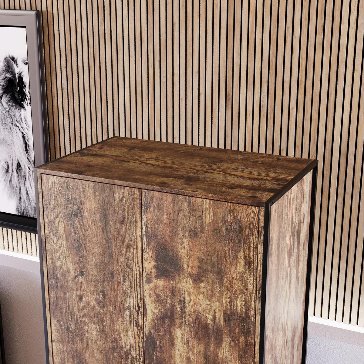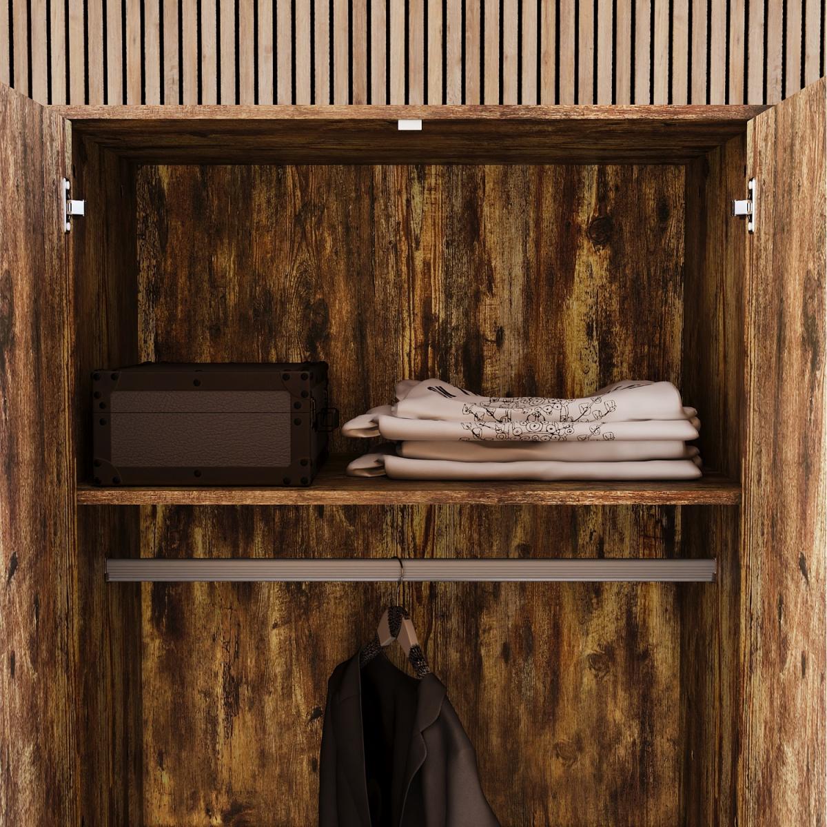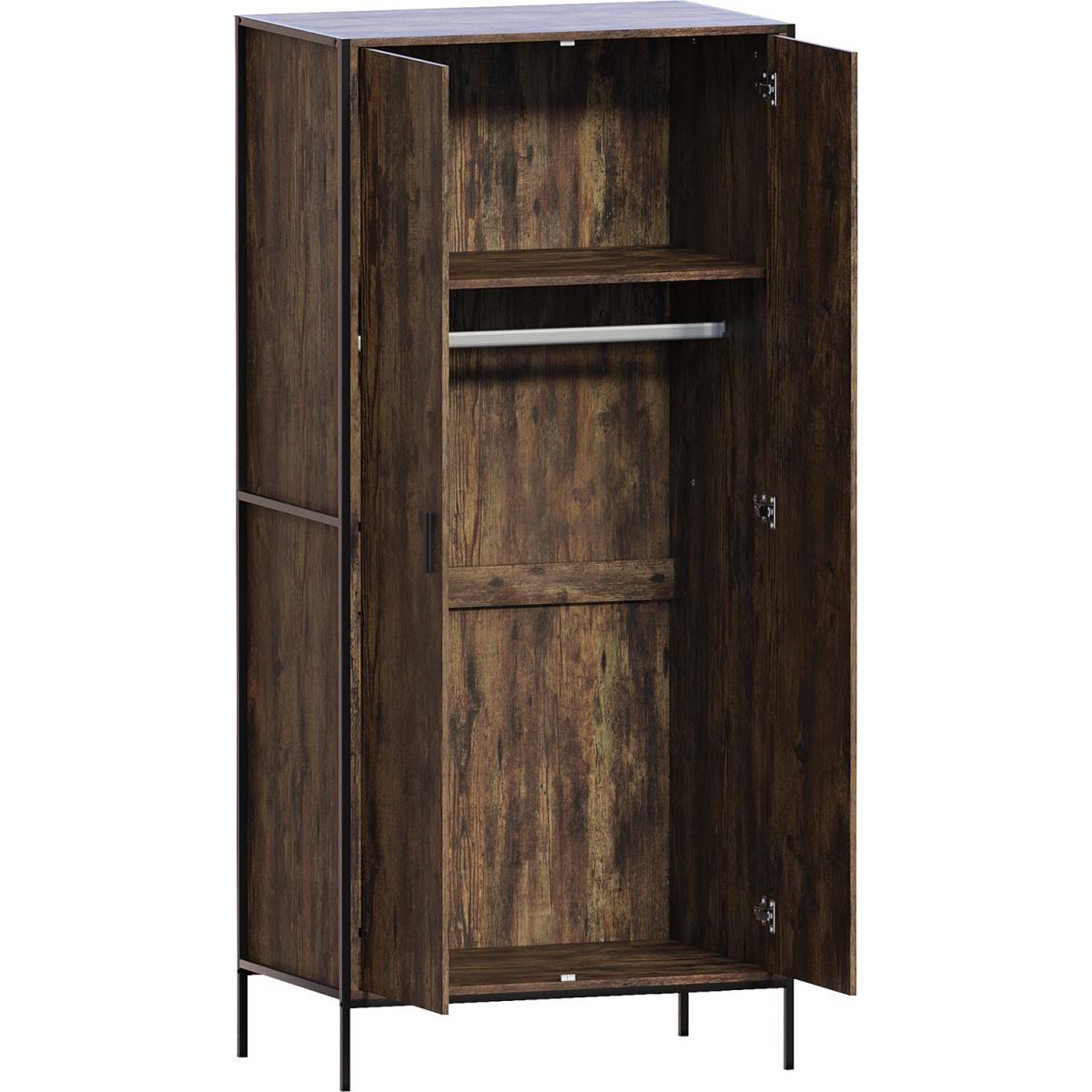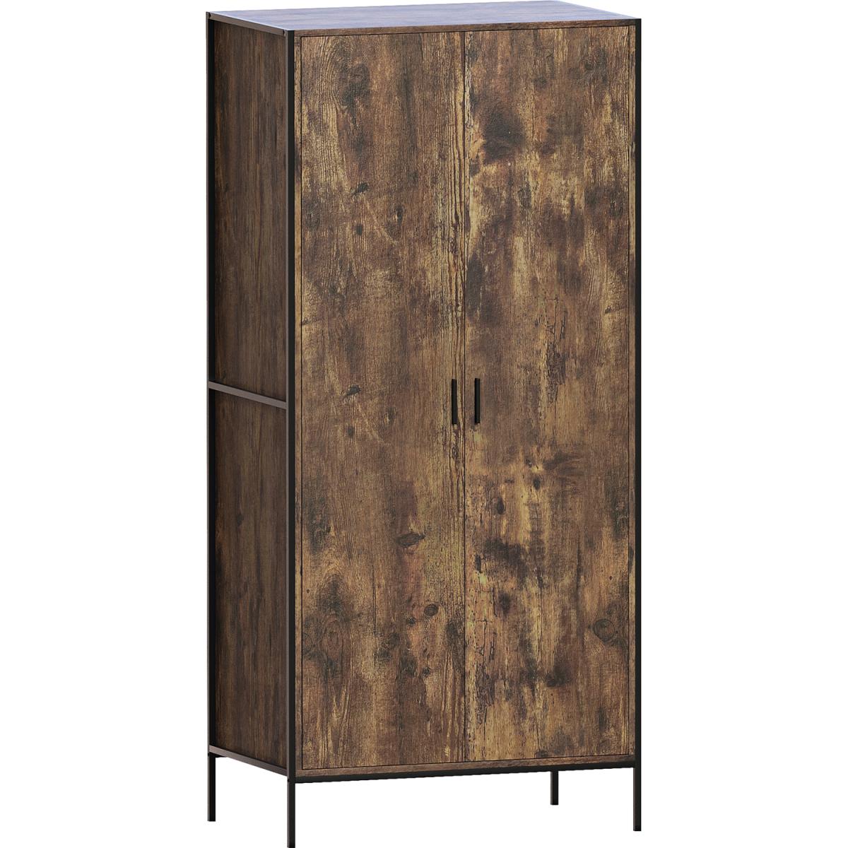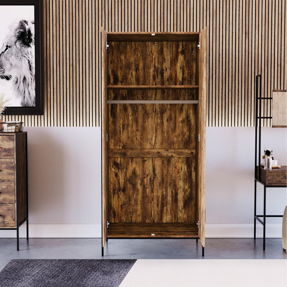 As part of the Brooklyn collection, this 2-door wardrobe combines a powder-coated black iron frame, rustic dark wood or grey wood carcass. It is complemented with a black aluminium handle to create the ideal industrial-style inspired furniture. Coming in two neutral colour options, you have the perfect opportunity to choose the wardrobe which would be the perfect match for your bedroom. It features a hanging rail and a large storage shelf above where you can easily store a large number of clothes without them getting creased or untidy.