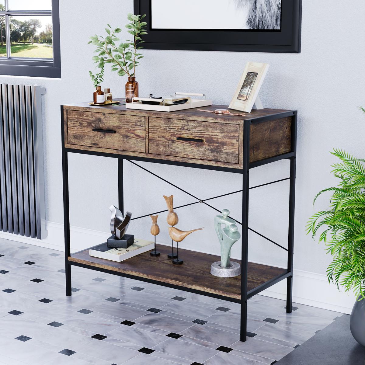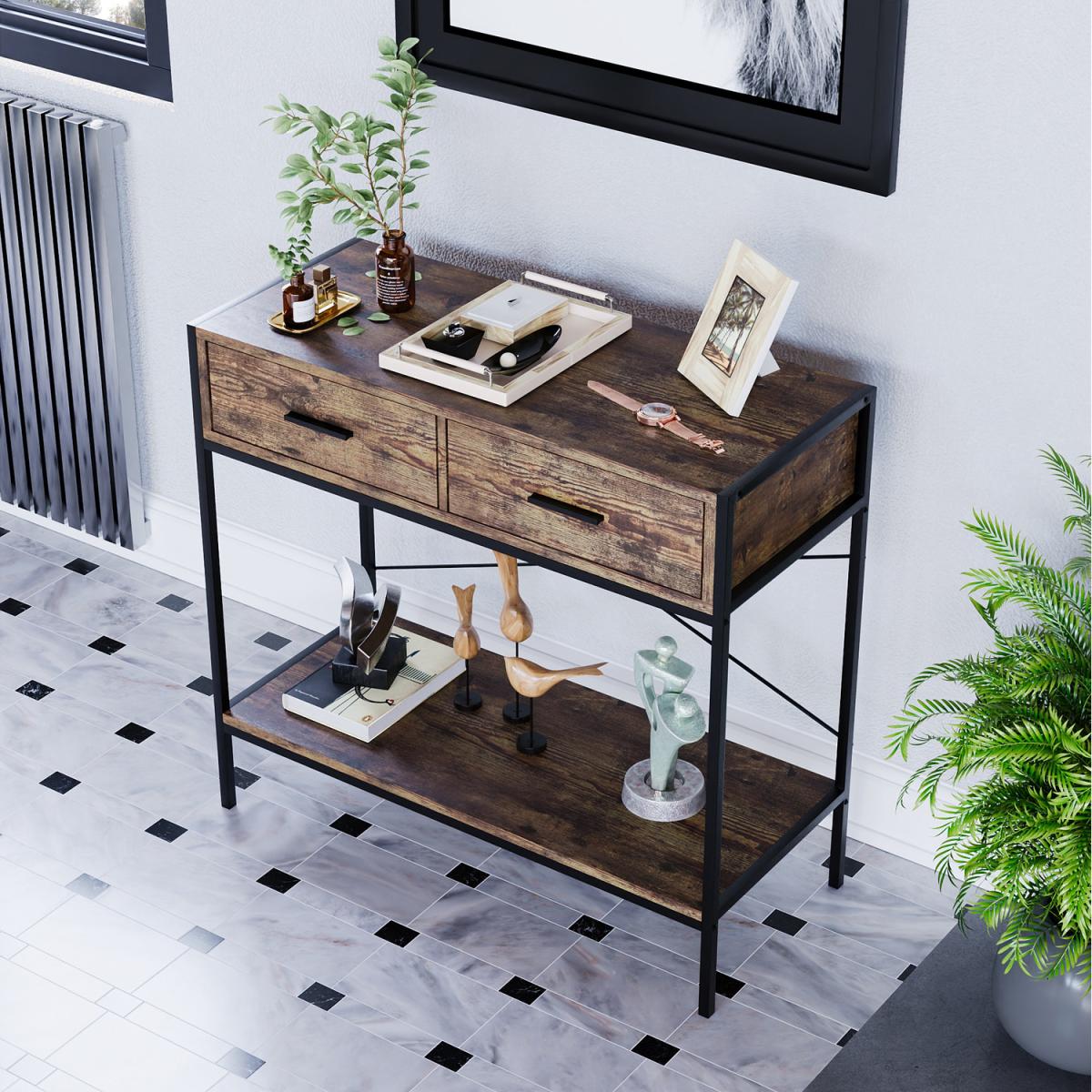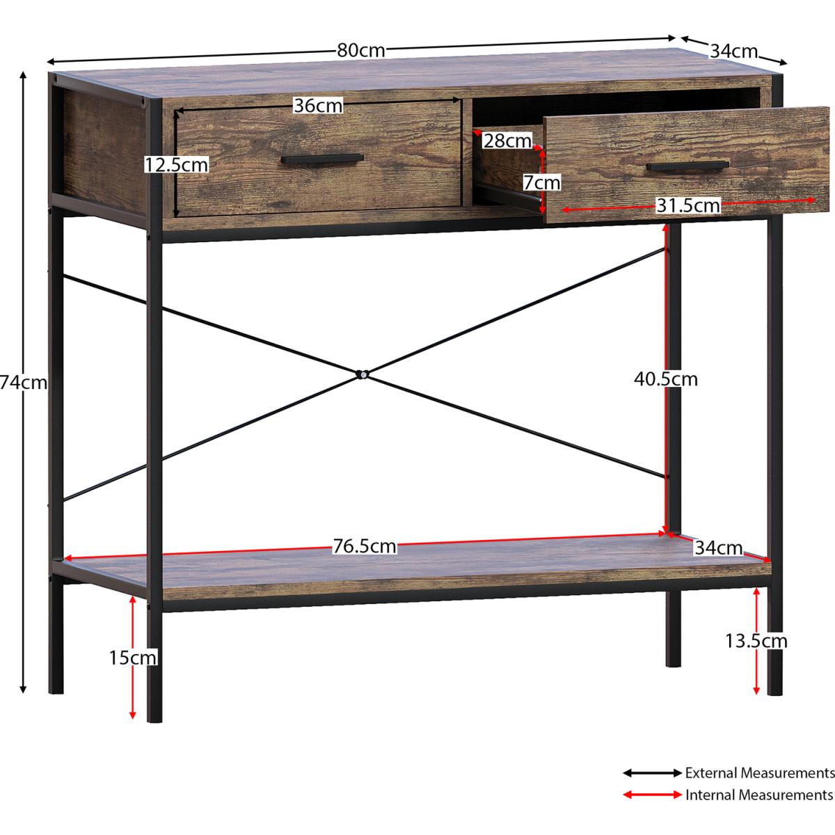Brooklyn 2 Drawer Console Table - Dark Wood