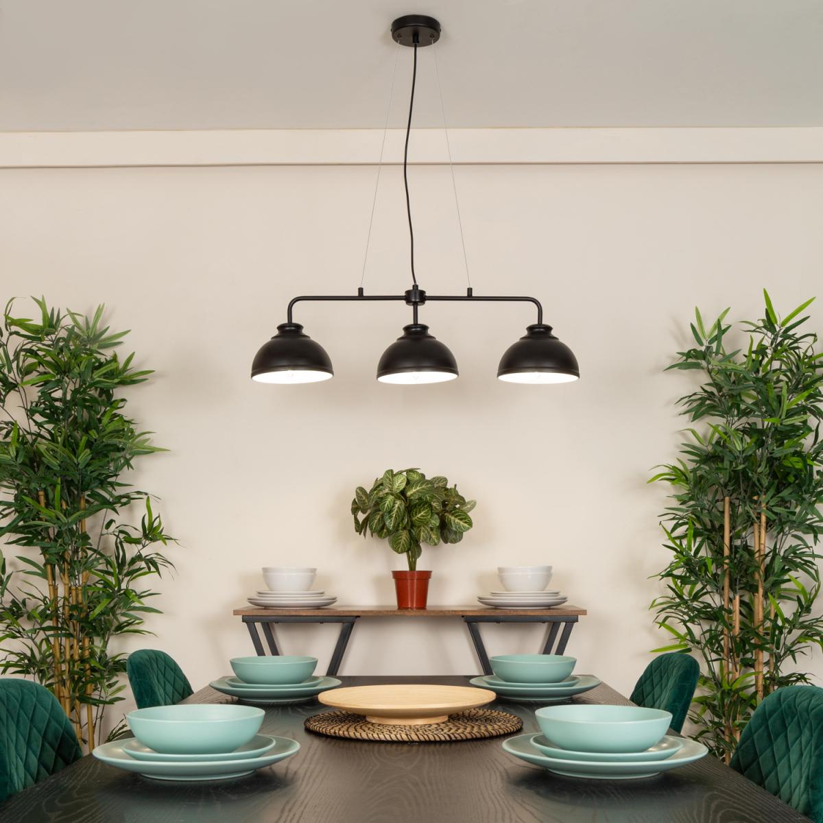 I love this pendant bar for its versatile industrial look, which adds a touch of urban style without feeling too harsh. It's perfect for open-plan kitchens, dining areas, or even a contemporary dining room where you want to create a casual yet stylish focal point. When styling, consider pairing it with exposed brick walls or wooden accents to enhance the raw, industrial vibe, or use it as a contrasting piece in more modern interiors. For practicality, try using vintage or filament bulbs to complement the matte black finish and give off a warm glow. Hanging the lights at different heights can make the overall look more dynamic and visually interesting, especially over a kitchen island or dining table.