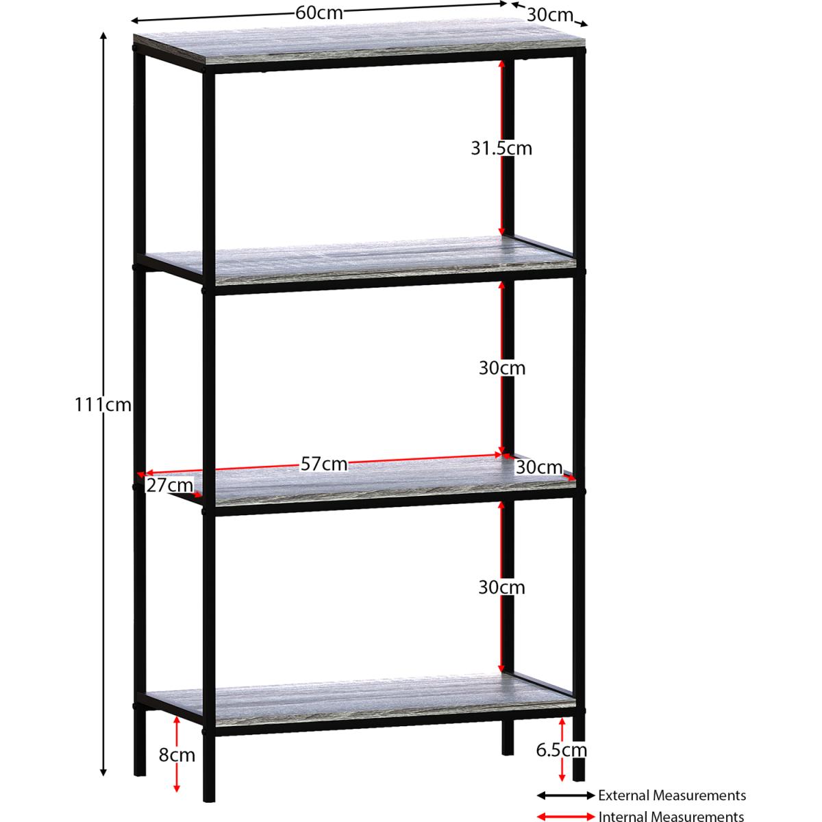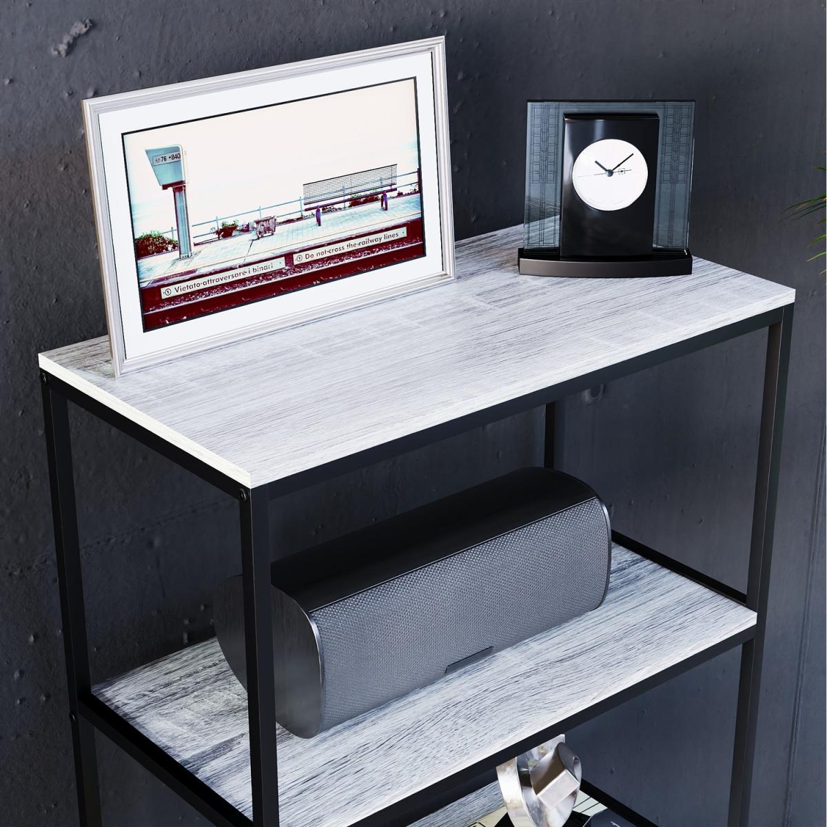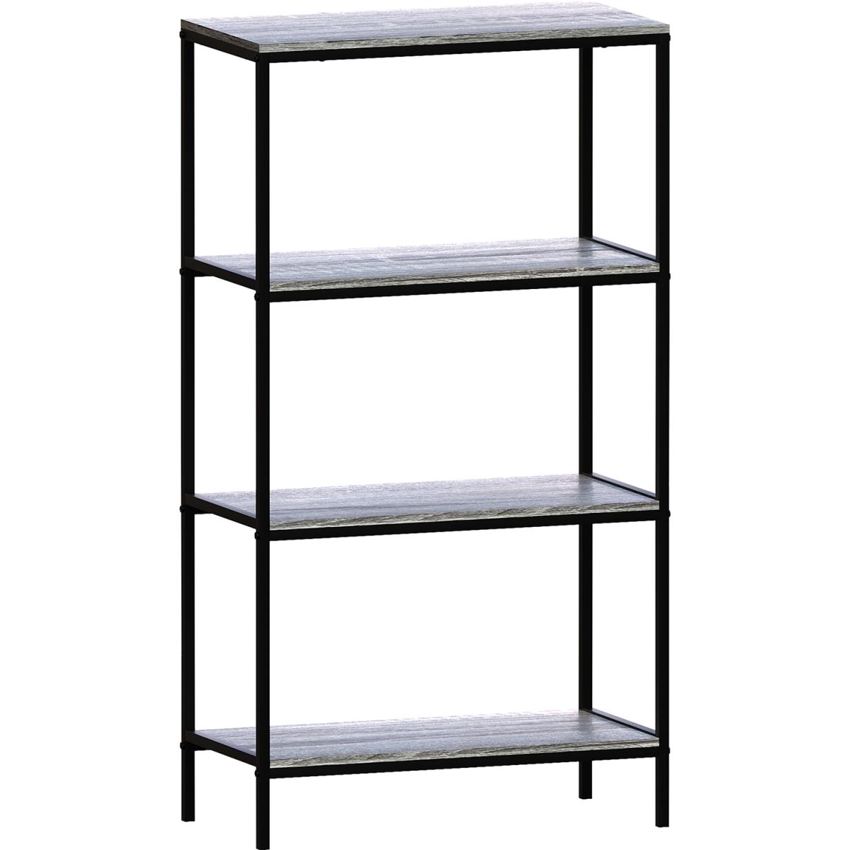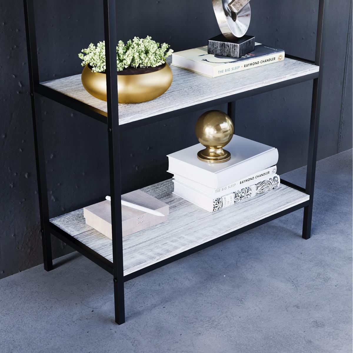 I love how this grey 4-tier shelf’s slim black frame and timber-effect planks keep things looking fresh without overwhelming a room. It works equally well in modern, Scandi or industrial schemes, slipping neatly into a living room, hallway or home office. For practical styling, alternate books with attractive storage boxes, add a trailing plant or two on the top shelf, and arrange decorative objects in odd-numbered clusters. Leave a little empty space on each tier to maintain an open, airy feel.