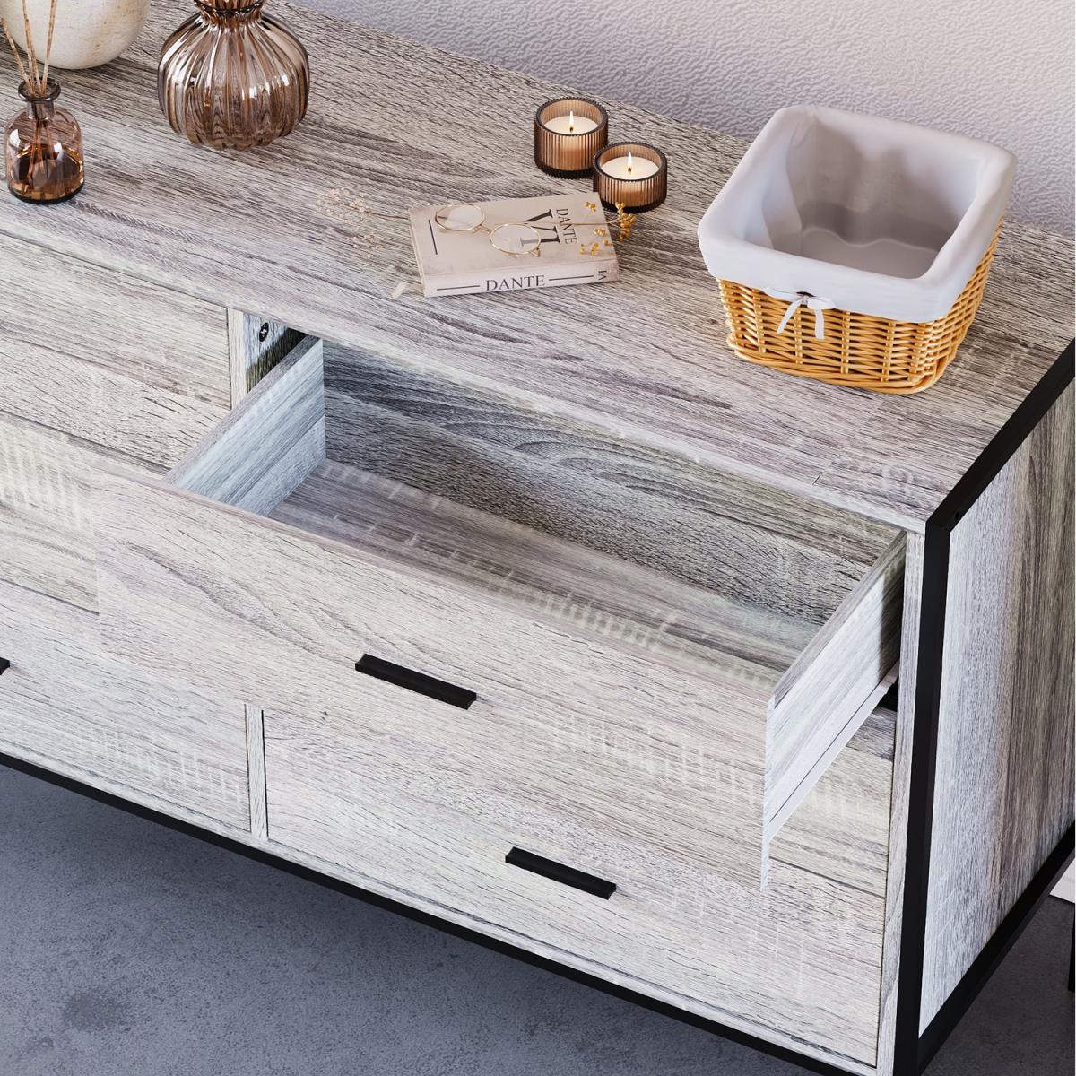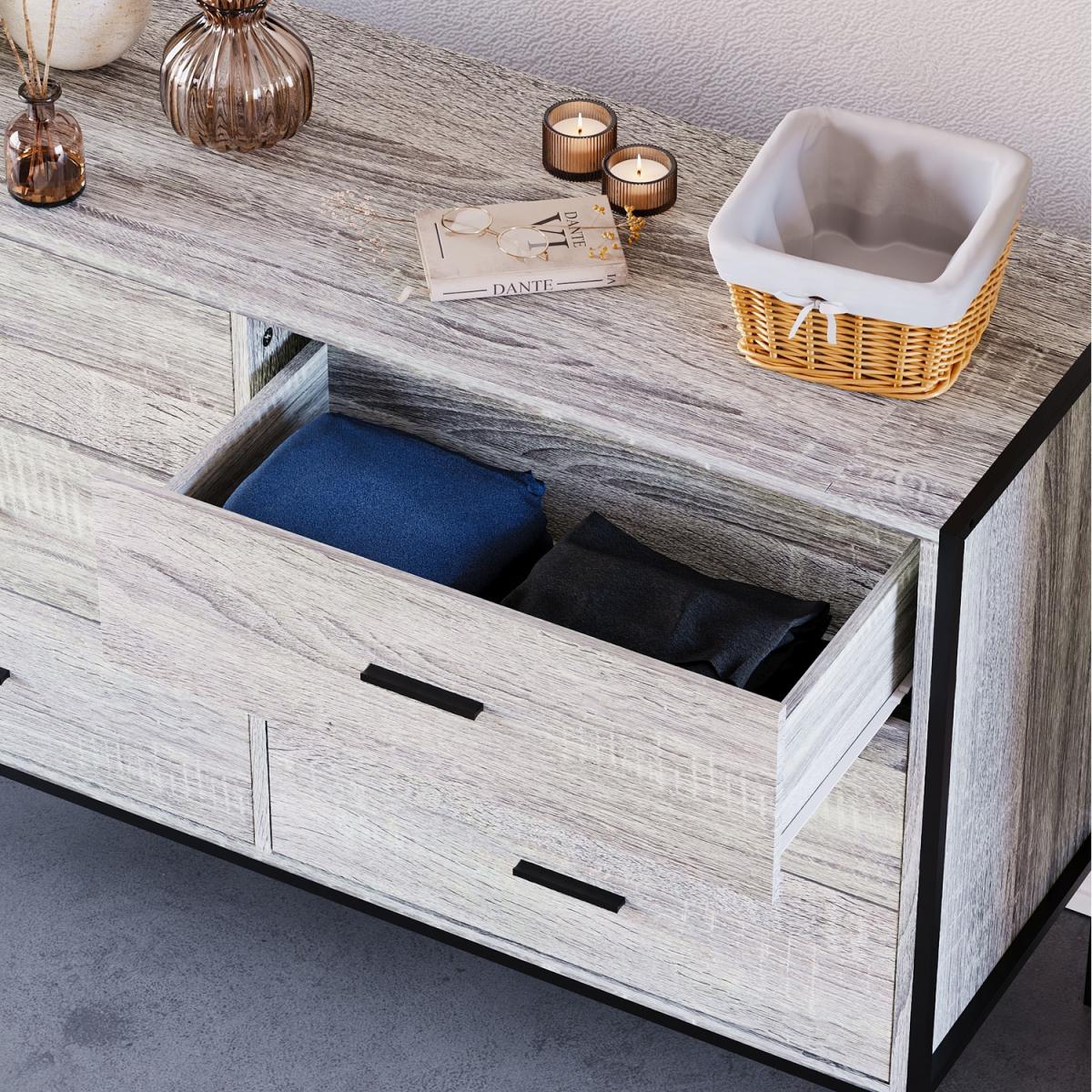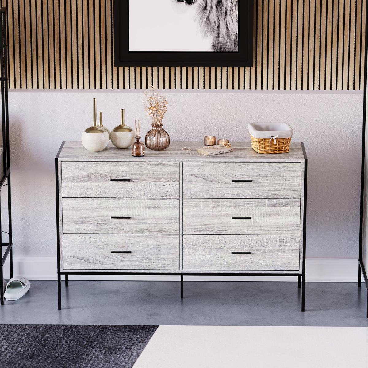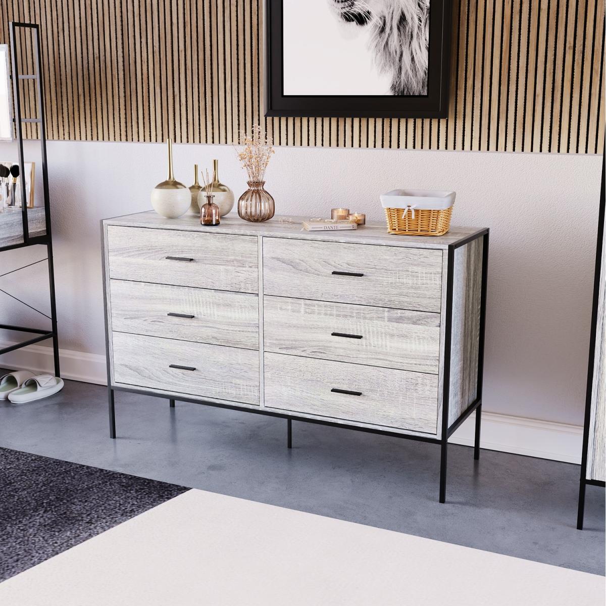 I’m a fan of this Brooklyn chest for its clean-lined metal frame and muted grey timber effect - it feels both lightweight and sturdy. It slips effortlessly into Scandi, industrial or contemporary schemes, especially in a hallway or bedroom where you need extra storage without bulk. For styling, keep the top simple: a low-profile tray for keys or jewellery, a pair of slim vases in contrasting tones and perhaps a round mirror above to soften the angles. Tuck a decorative basket next to it for spare throws or umbrellas, and choose hardware accents (lamps, frames or hooks) in black or aged brass to pick up the handles’ finish.