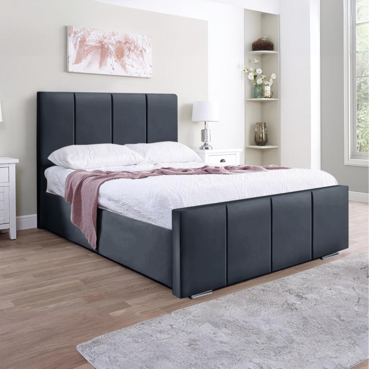 This Panel bed is created in regards to modern style and gives you a look of latest trends to decorate your bedroom. The patterns created on this bed are based on unique but exquisite longitudinal margins that creates a graceful appearance. Furthermore, these elegant patterns are craved out on finest quality of velvet that enhance the aesthetic aspect of this bed. In addition, this bed also features a sublime experience of softness and coziness to offer you with a sound sleep that you have yearned for decades. Succinctly, our beds are the kinds of bed that you dream to possess and experience a relaxing slumber to eradicate all the tired of the weary days. Headboard Height 125cm